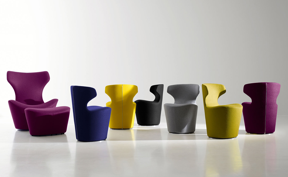 看似由單一材質一體成形的大型雕塑物件,Grande Papilio 流線形的設計從倒置的錐形體中雕塑而來。由下而上漸寬的椅背空間,提供了極致的舒適放鬆體驗。Grande Papilio 旋轉 360° 的底座系統能自由自在的環視空間中恣意流動的美好。強烈雕塑個性特質的 Papilio 系列家具也持續的擴大當中,不同大小和用途的 Papilio 家族:Papilio、Piccola Papilio、Grande Papilio、Love Papilio、Mini Papilio、Papilio Ottoman 提供了多元而完整的舒適空間。