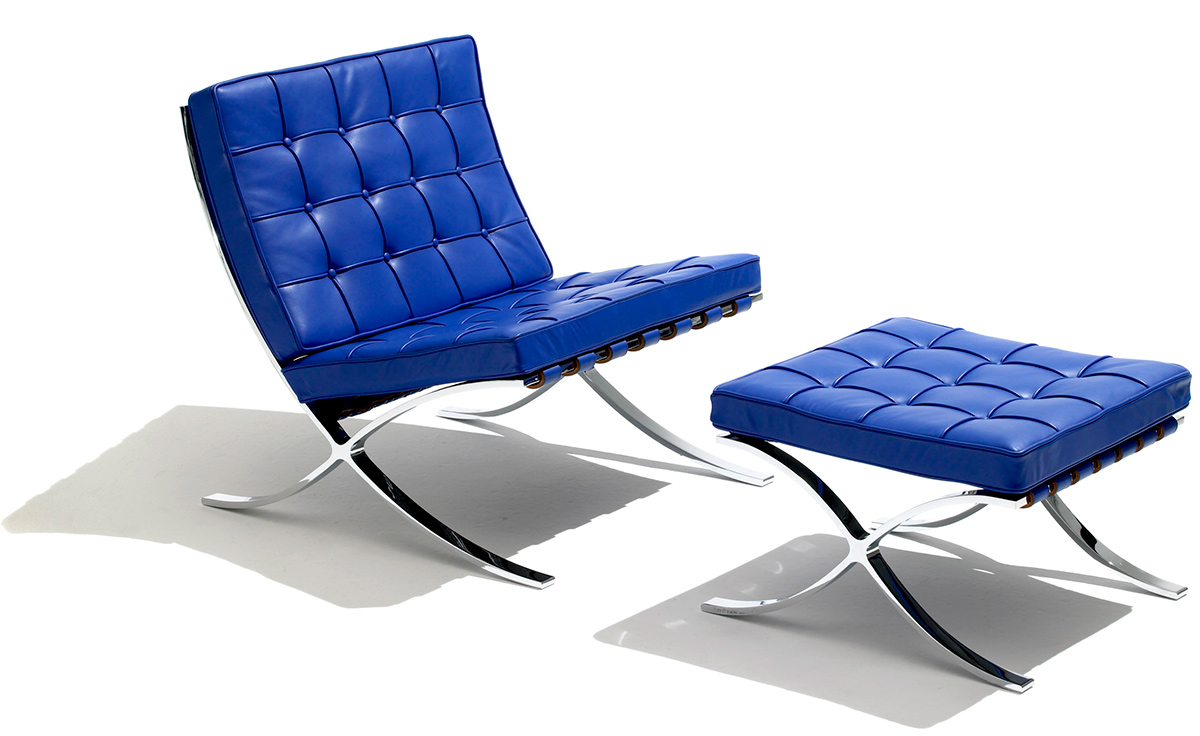 巴塞罗那椅由设计师密斯在1929年巴塞罗那世界博览会上,为了欢迎西班牙国王和王后而设计,同著名的德国馆相协调。这件体量超大的椅子也明确显示出高贵而庄重的身份。当年的世博会德国馆是密斯的代表作,但由于建筑的设计意念独特,竟没有合适的家具与其搭衬,所以他不得不专门设计了巴塞罗那椅来迎接国王和王后