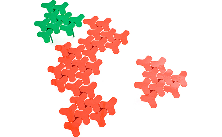 Nanook系列是由瑞士设计师Philippe Bestenheider于今年为意大利Moroso设计,并在今年的米兰家具展上进行了展出。Nanook系列包括一把凳子、一把椅子和一张角桌。该系列作品表现了平面到三维世界的转变。凳子和椅子的六边形网状结构的灵感来自于分子几何学。Nanook系列以铸模成形的合成材料作为基本框架,而其座椅部分的表面织物上则进行了打褶和印刷处理,使其看上去有动物皮肤的紧致感。如同因纽特人用动物皮毛取暖一样,作者试图用这种方式唤起人们深处的记忆,而他的创作灵感也源自遥远的北极。Nanook系列的桌子和凳子看上去更像是雕塑而不是家具。设计师源自分子结构的灵感让人们感觉该系列更加独特,尤其是多张桌子并排放置时,产生的效果就像一片静静矗立的风车。而有靠背的椅子则更像是一片被折叠的五彩雪花,令人犹如置身于神秘的北极。