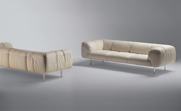 由意大利设计师Cini Boeri为当地家具品牌Poltrona Frau设计的软沙发Bebop,有两座及三座:Bebop 2-seater Sofa(比波普双座沙发)、Bebop 3-seater Sofa(比波普三座沙发),简洁圆润的设计线形,天鹅绒般柔软的舒适坐垫,底座和靠背框架采用山毛榉木,扶手则为白杨木,再覆以Pelle Frau皮革,沙发腿为镀铬钢管,看上去简洁高贵,优雅低调,关键是放在哪个环境下都不突兀,速配率超高。