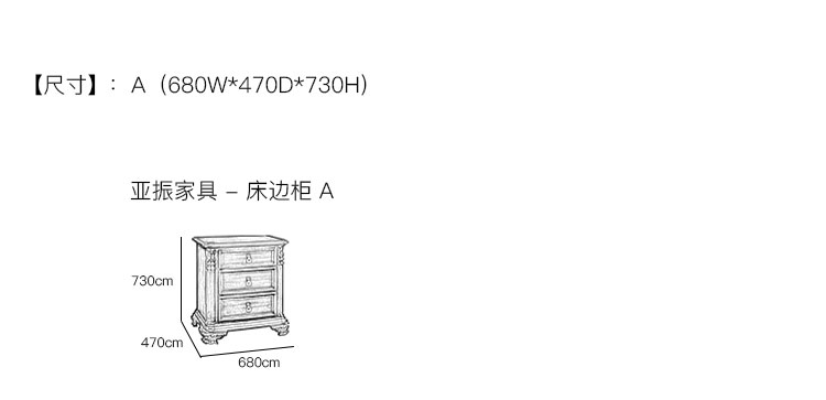 亚振家具 - 床边柜 产品尺寸/示意图