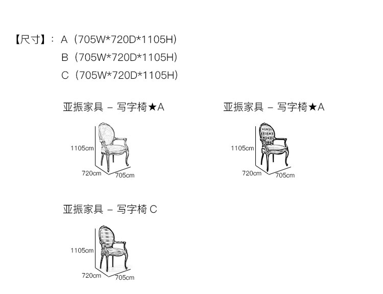 亚振家具 - 写字椅 产品尺寸/示意图
