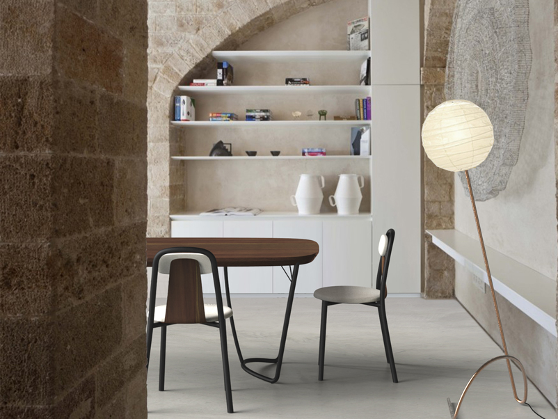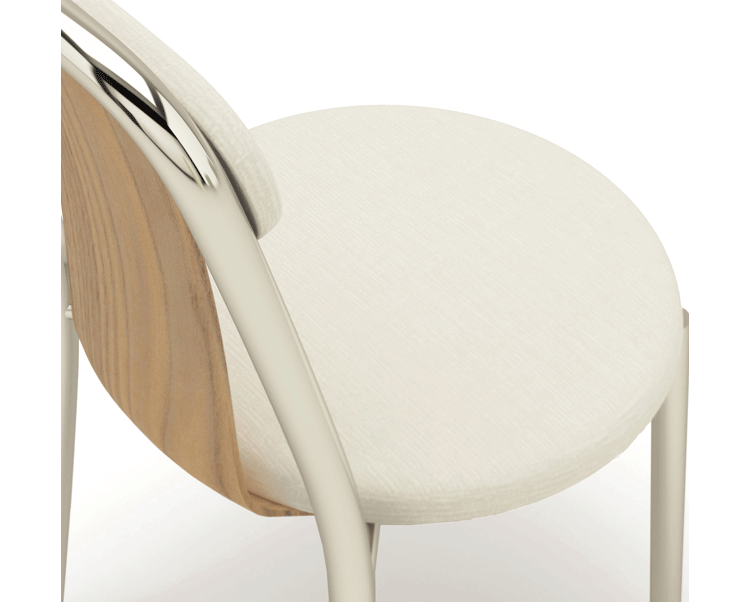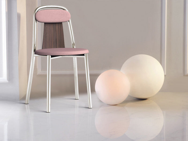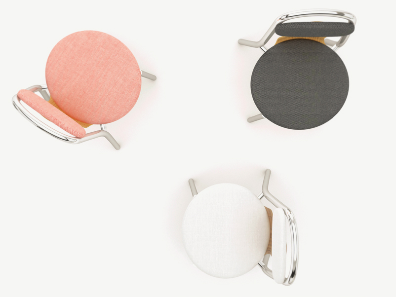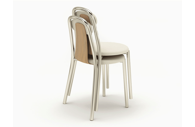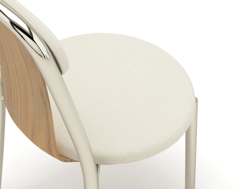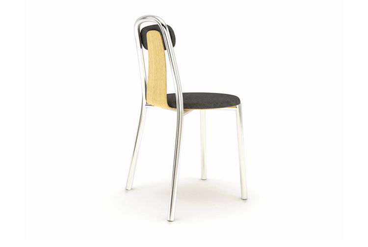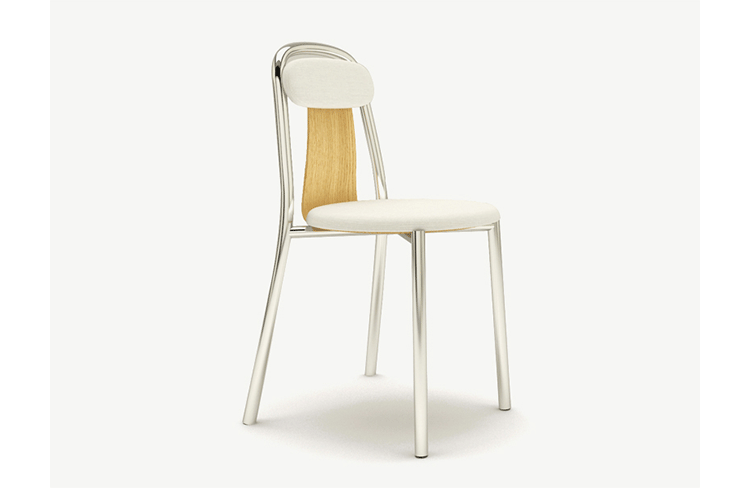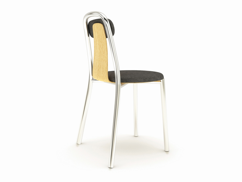 Super-light aluminium frame in combination with fine bent plywood and upholstered seat and and back rest. Pli chair is a compact chair designed for high comfort and functionality. The combination of materials and the balance among the parts it makes it a remarkable object as well. Stackable.