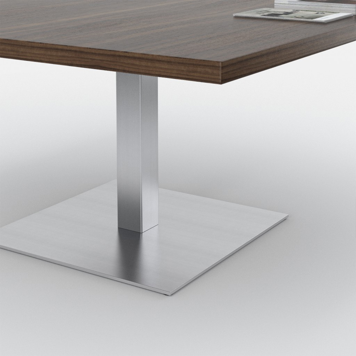 桌面和侧面,水平和垂直形成一个均匀的结构,是Headoffice Mono系列会议项目设计团队所执行的结构概念。强大的线条与精选材料的优雅相结合。由侧面和桌面所制成的直角,中间的桌子上有醒目皮革包裹的面板,如果有需要,可以使用滑动皮板来打开集成线路。电缆布线隐藏在桌面和副柜之间。