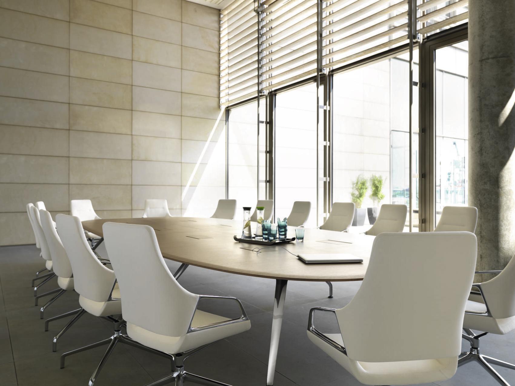 他的Graph反映了图表会议椅的主要设计特点。椅子的足部、扶手都可以在Graph会议桌上无缝反映出来。在桌子的框架上,铝的框架与倾斜的压铸铝腿和它们弯曲和扁平的外观相呼应。因此,在工作台框架上,灯线始终如一地出现,从而使框架具有无缝外观。巨大的跨度也给人留下了一种优雅的印象,引力似乎在那里几乎停滞了。这个ef fect是由不对称曲线的表边和表的圆角来增强的。