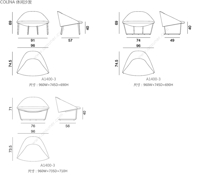Colina 休闲沙发 系列尺寸/示意图