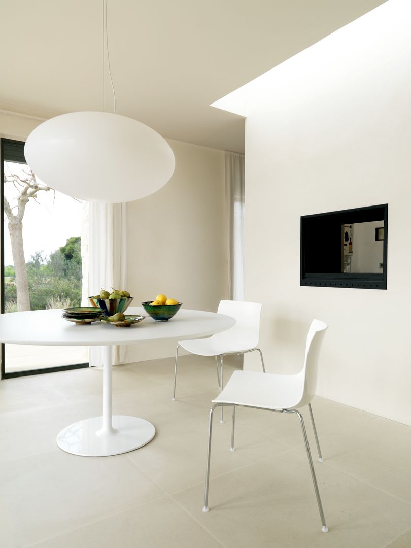 餐台带双椭圆形底座,白色有光泽或黑色哑光粉末涂层钢,顶部为白色压花MDF(厚2.5厘米)或层压板FenixⓇ(厚2,6厘米),有不同尺寸可供选择。 身高74厘米。