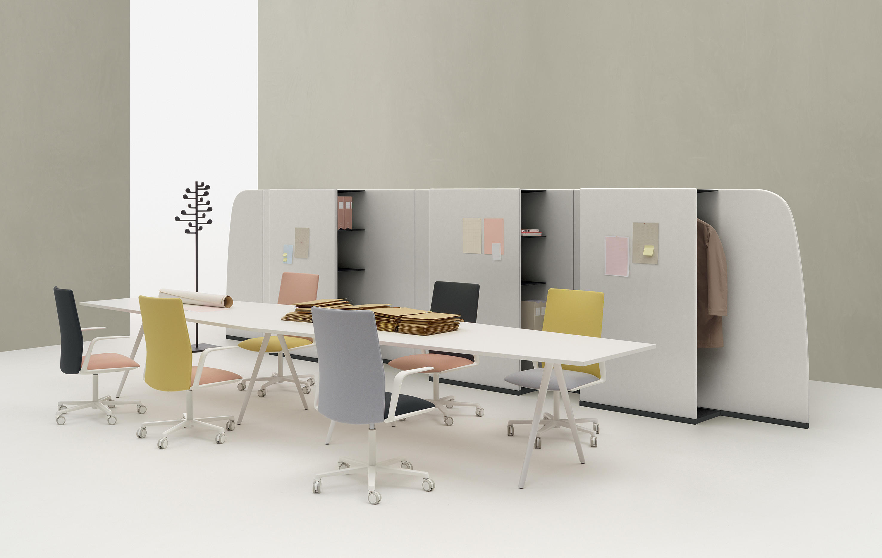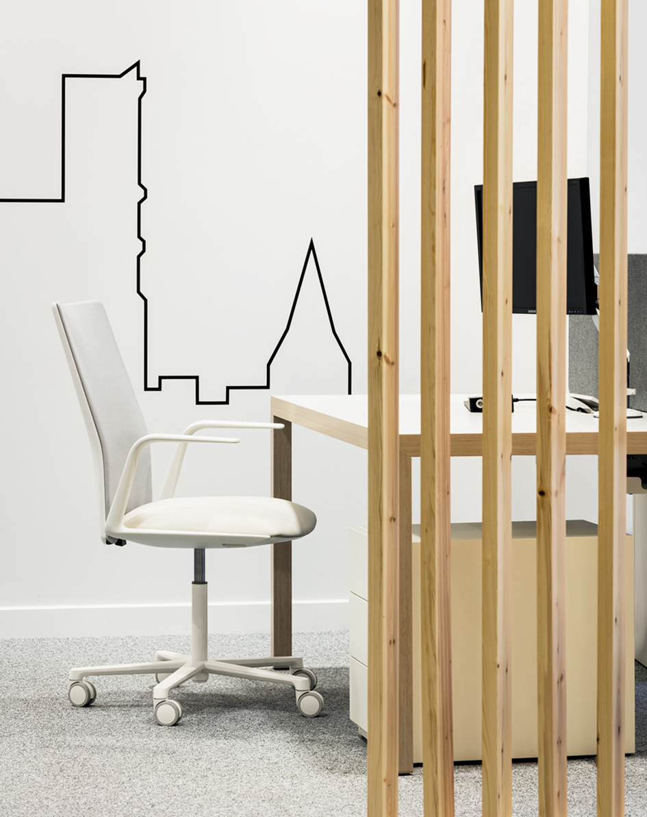 推出Kinesit,Arper的第一个办公椅,百分之百符合法规要求。椅子和椅背设计轻巧,设计简约,可完全调节,使其符合各种体型,即使在耗时较长的项目中也能获得最佳舒适度。椅子上有一个隐藏在座椅下方的内置机构,可提供同步运动和座椅高度指令。隐形可调节腰部支撑隐藏在靠背的薄框内,提供额外的灵活性和舒适性。 Kinesit可通过Arper目录中的所有面料系列进行定制。
