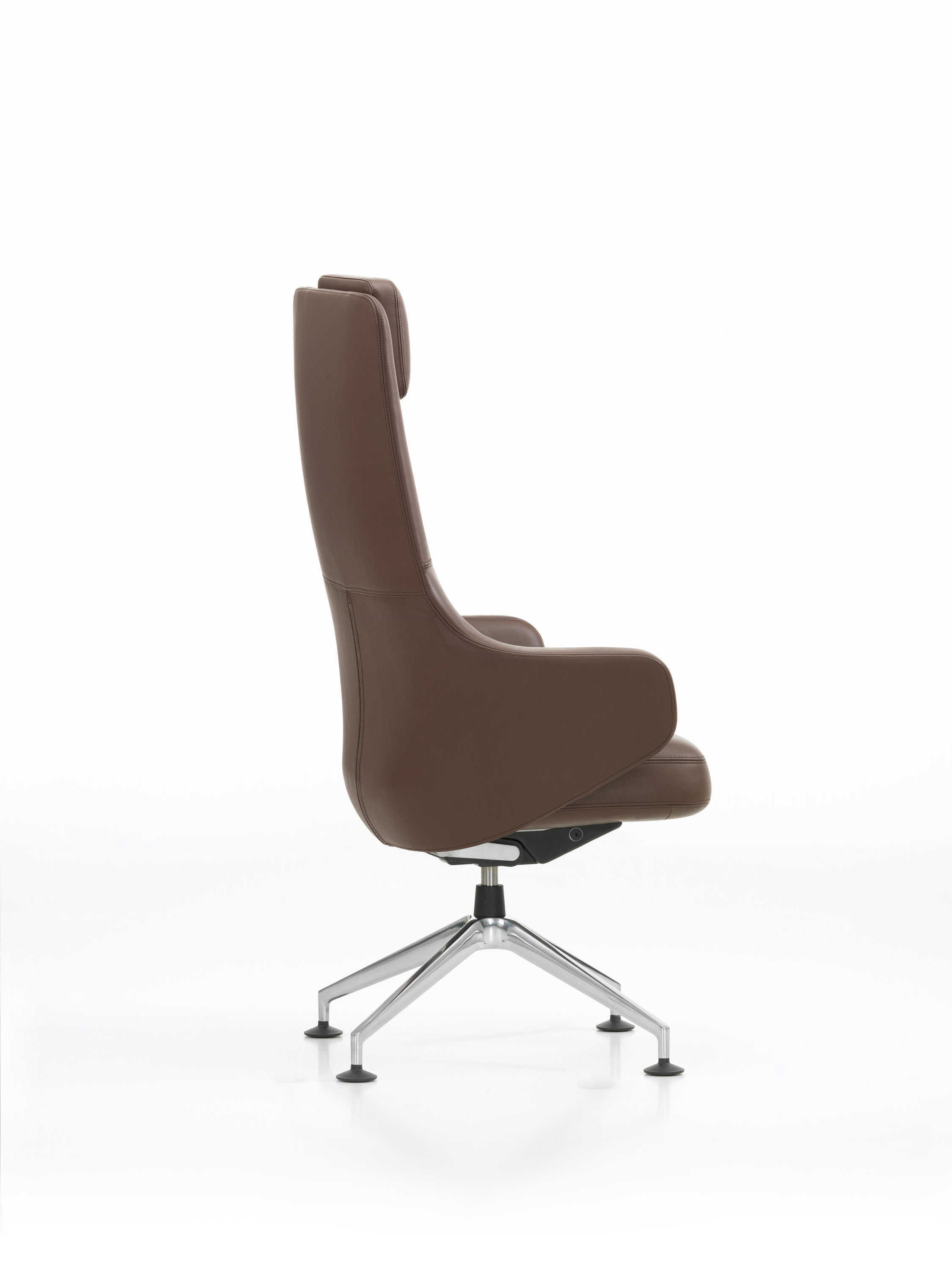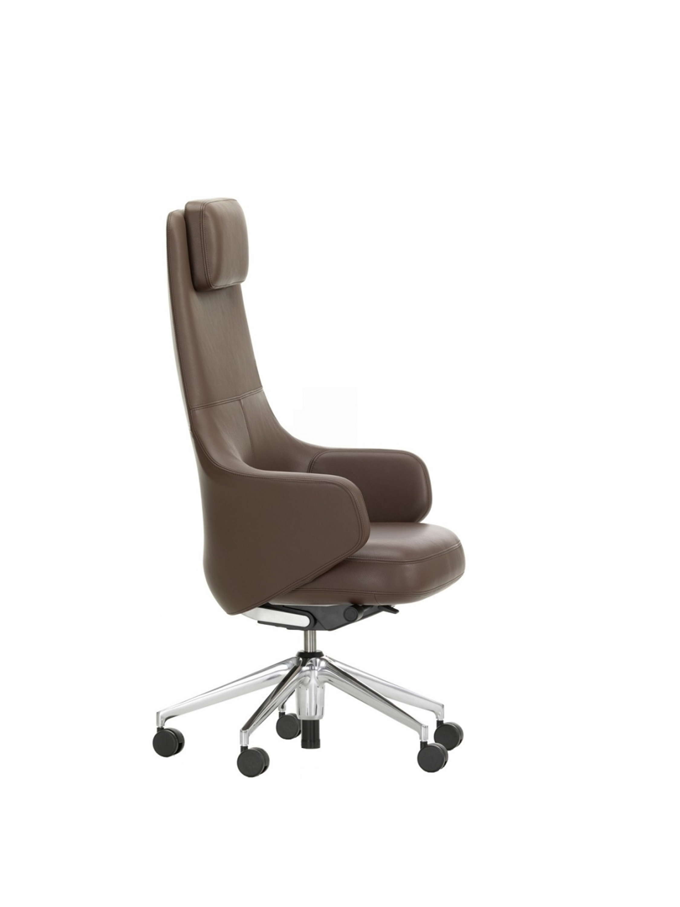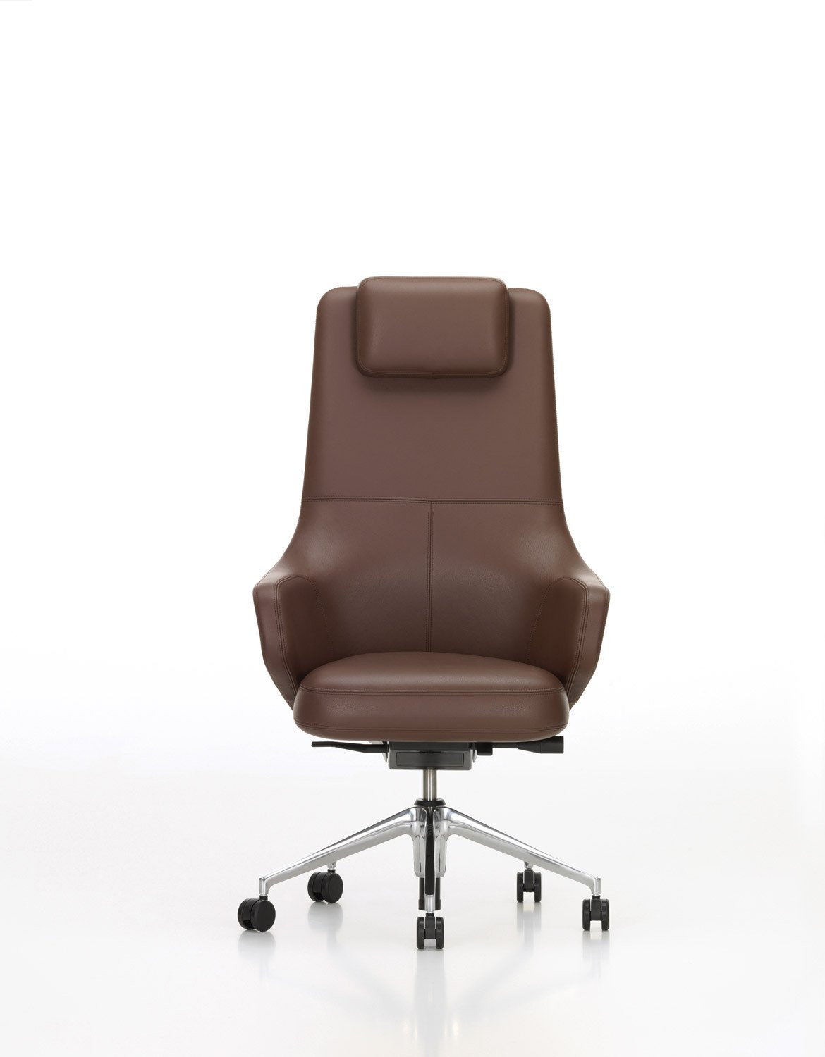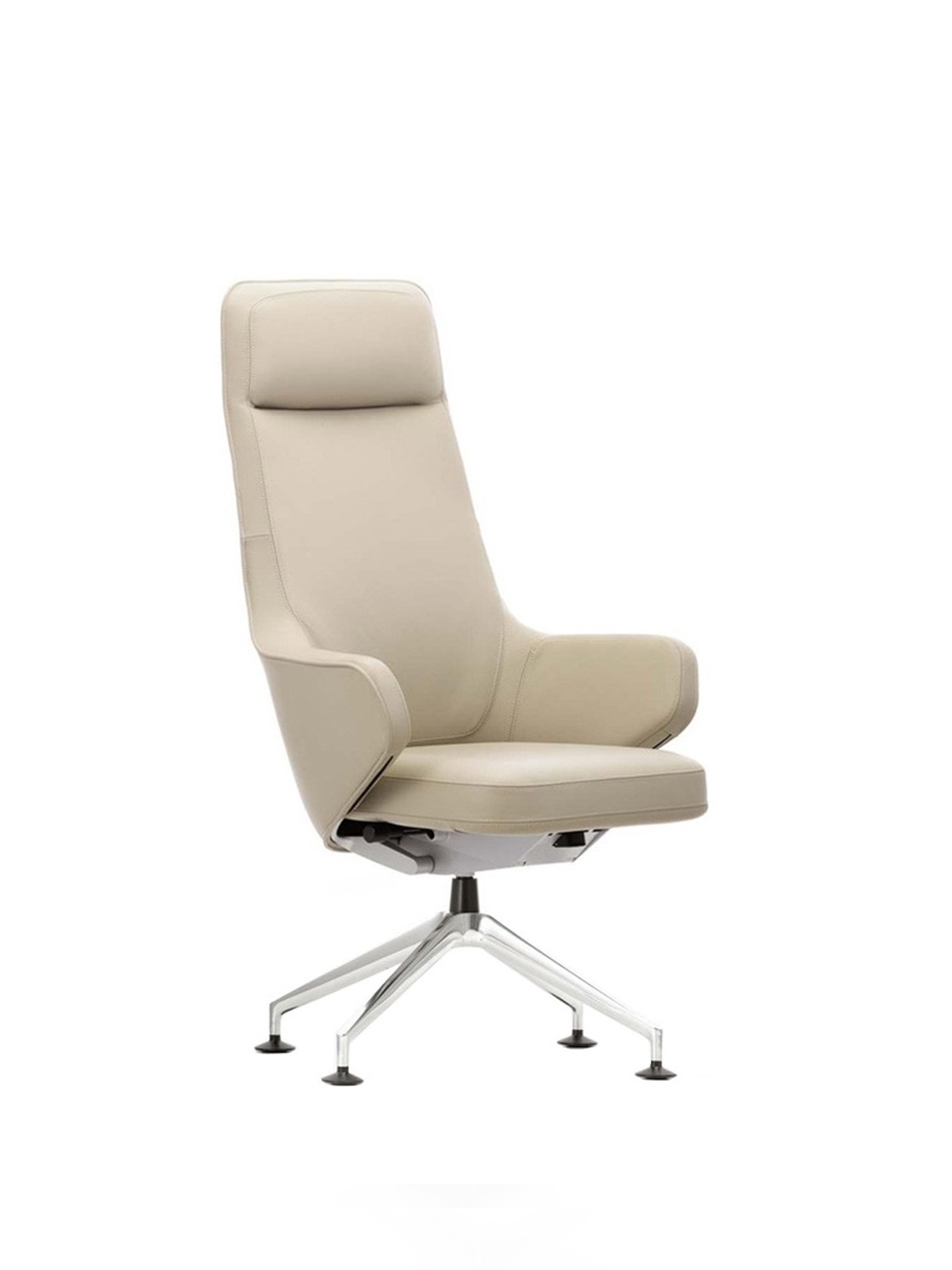 Grand Executive椅子结合了Grand Repos休闲椅的优雅,这是由Antonio Citterio为Vitra Home Collection设计的,具有现代办公椅的功能。 Grand Executive椅子的尊贵光环与时尚美感相得益彰。采用优质皮革制成,柔软的软垫内饰提供极致的舒适感。装饰性接缝凸显了椅子的手工细节,并勾勒出其体积结构。 FlowMotion机制可以适应个人用户,以确保每个坐姿的同步舒适度。 Grand Executive Highback模型配有可调节颈垫。