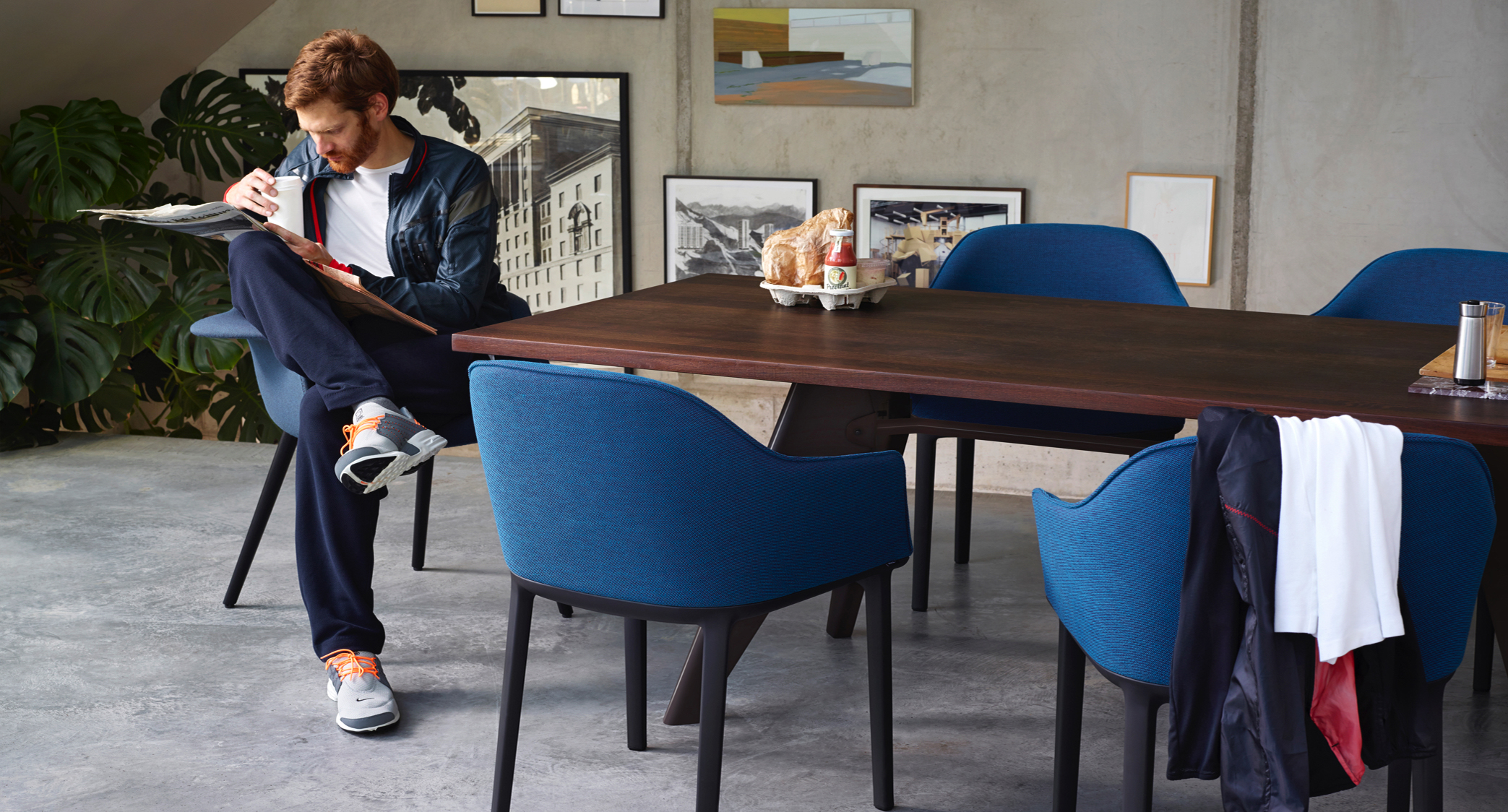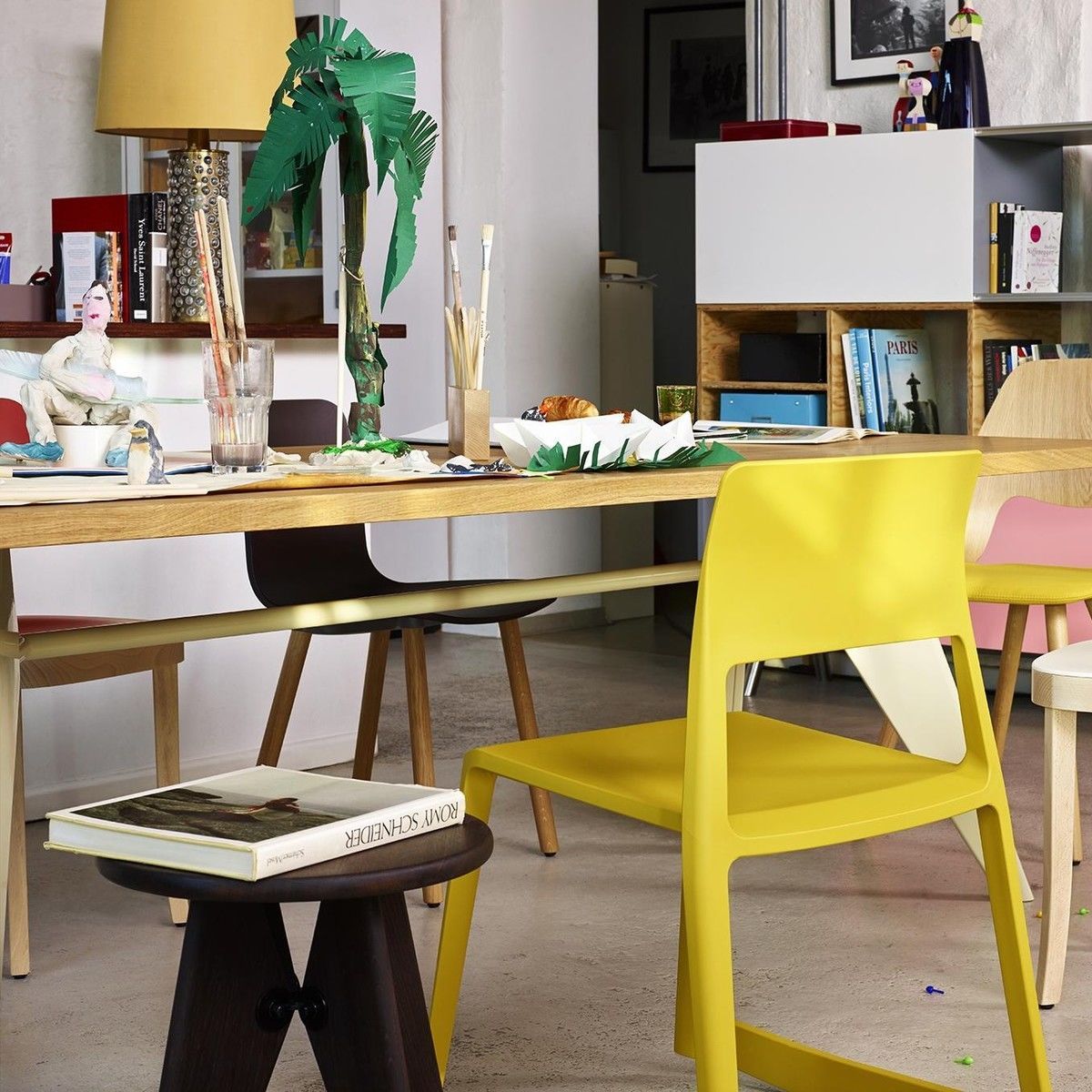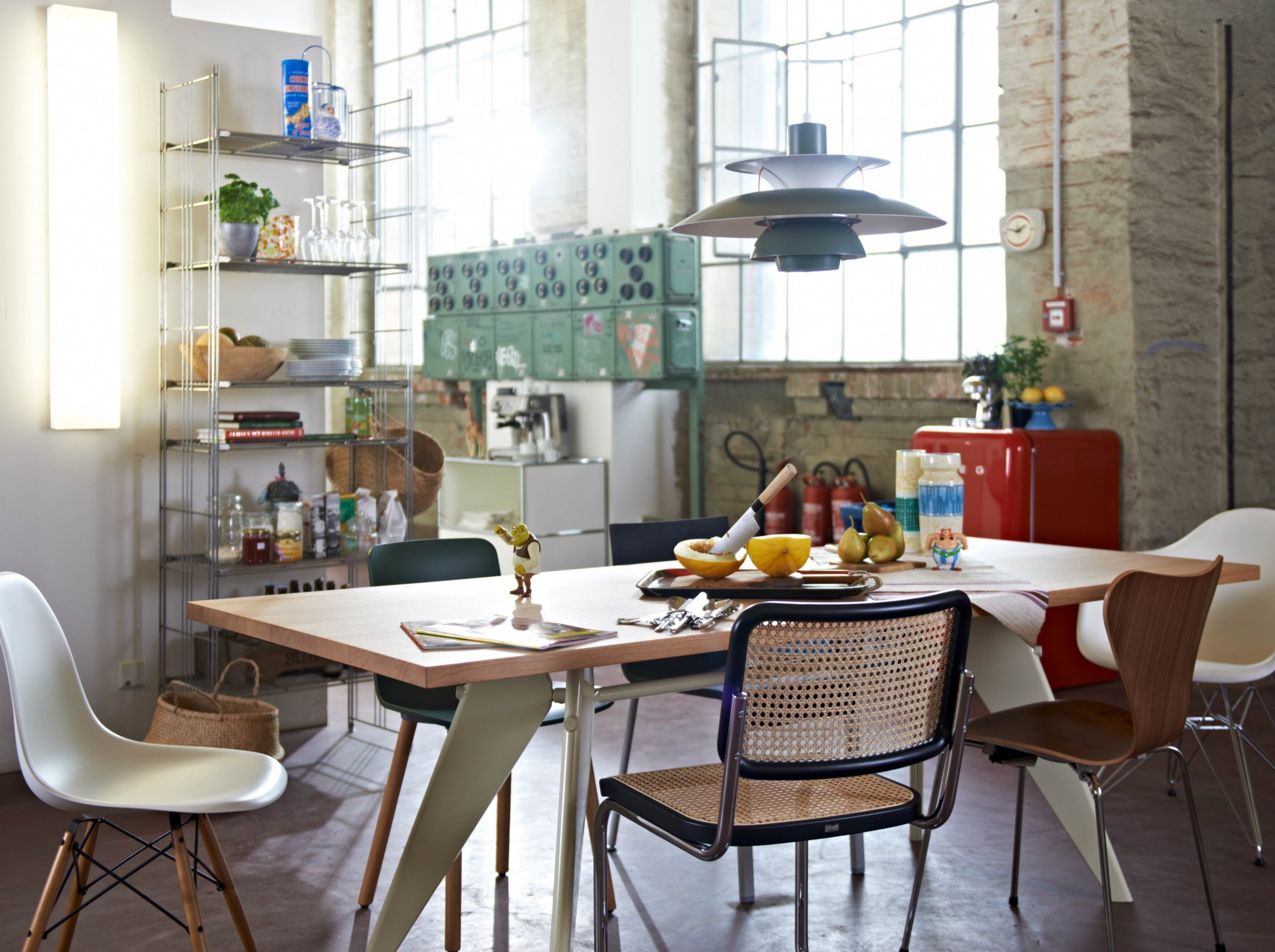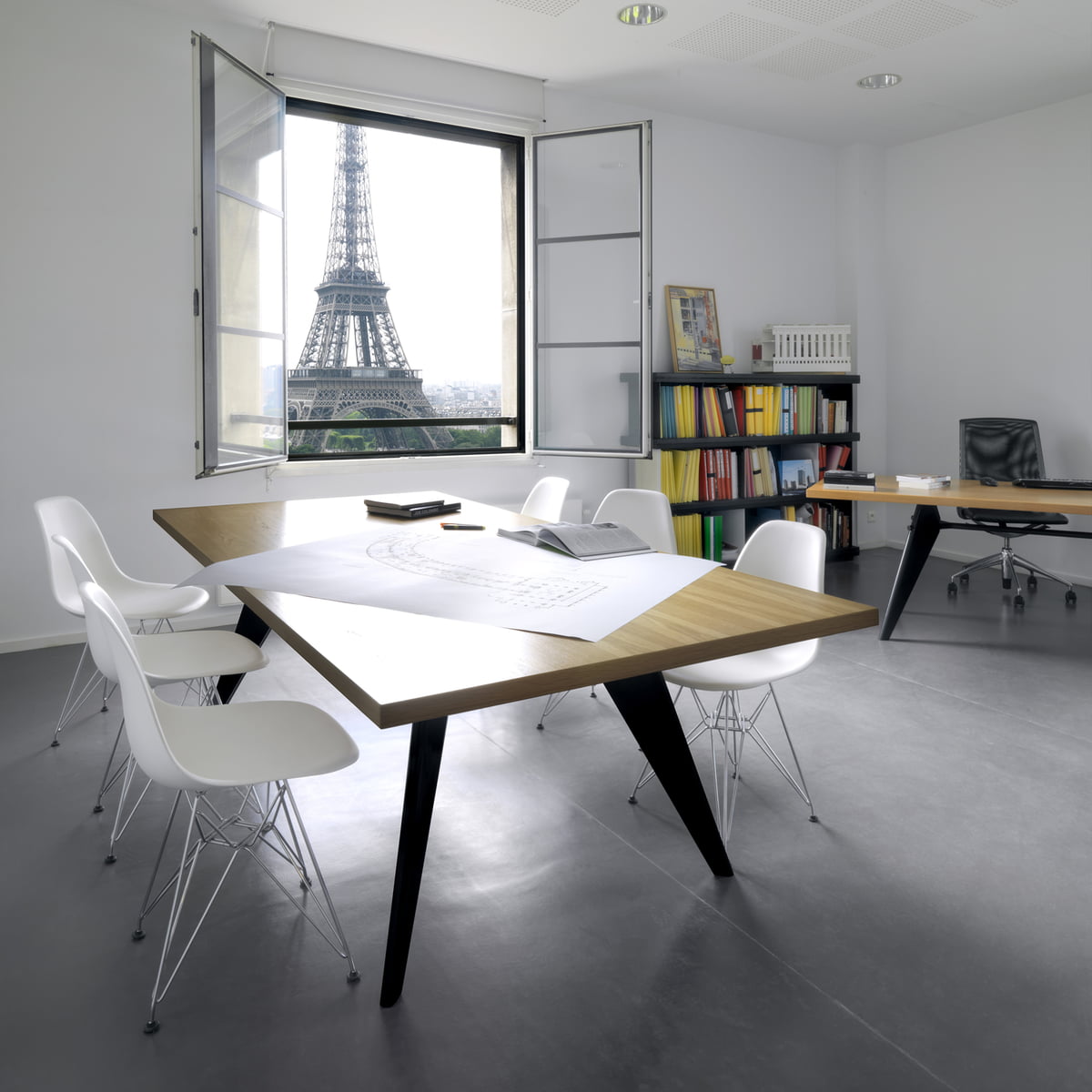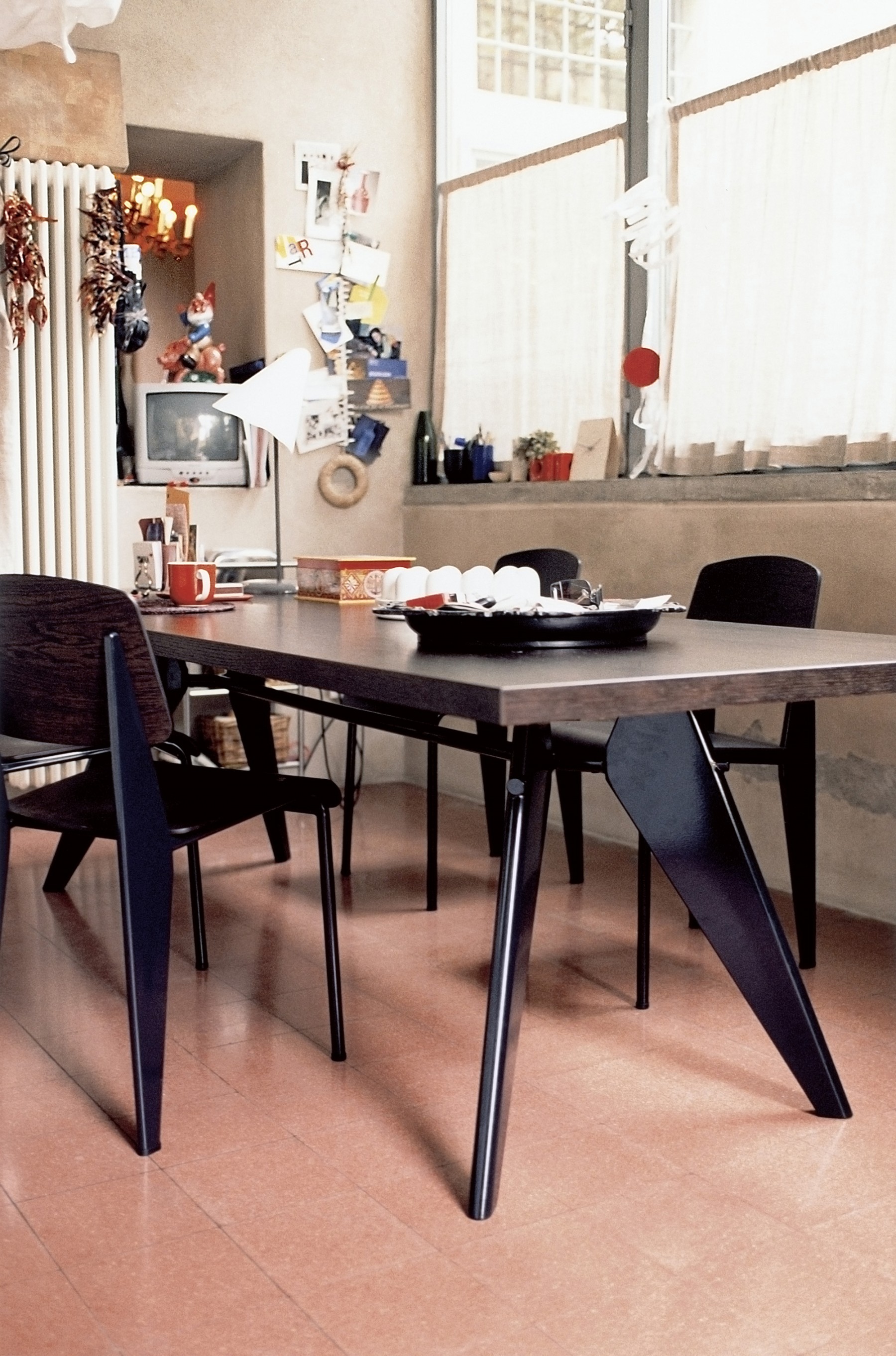 JeanProuvé的EM Table的美学外观坚持结构原则,说明其结构中的力和应力流动。 它有各种尺寸,桌面采用优质实木或HPL层压板,颜色可供选择。 长度为2000或2400毫米的顶部也有橡木贴面。 由于这种广泛的选择,每个餐厅都可以找到理想的EM Table。