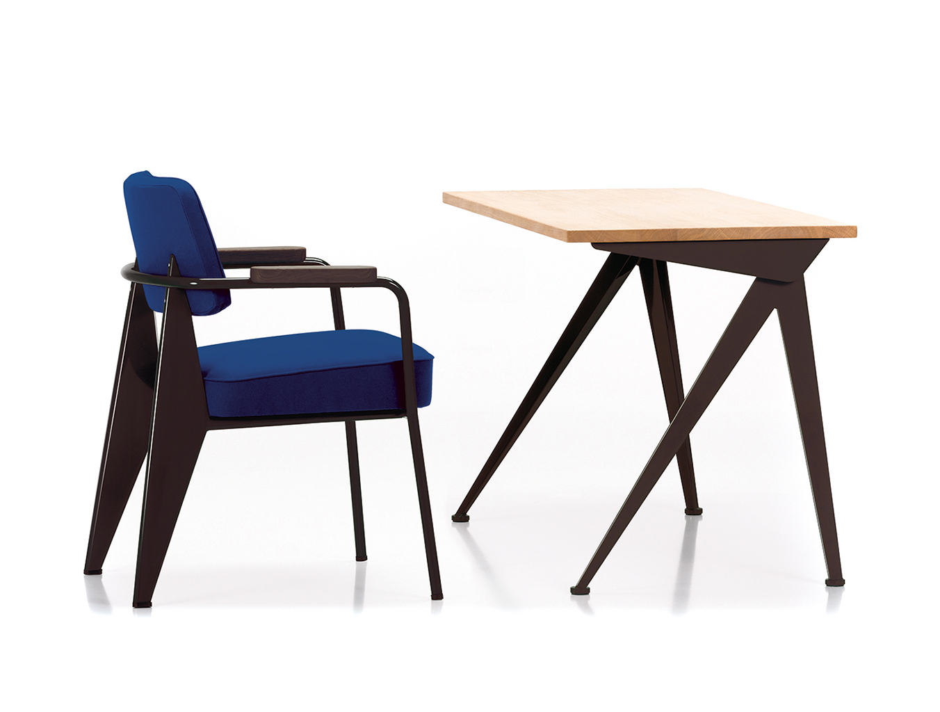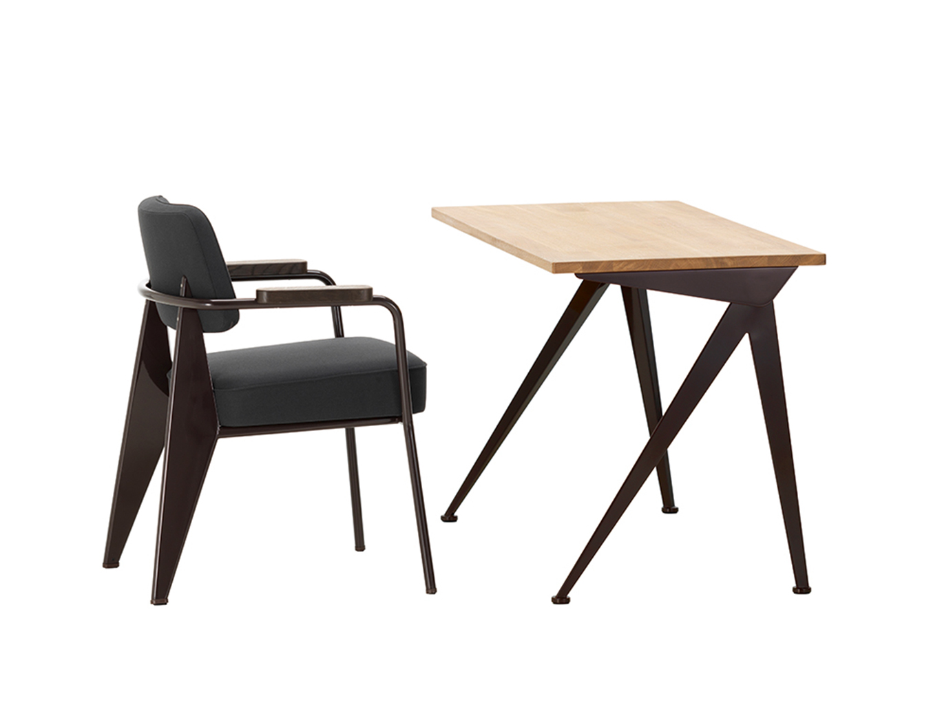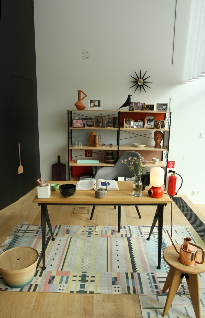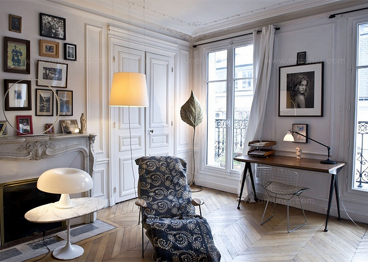 由JeanProuvé设计的Compas Direction办公桌,优雅的金属腿让人想起指南针的铰链臂 - 法语中的“le compas”。 他们的设计基于工程原理,代表了法国设计师和工程师的结构方法。 与涂油的实木桌面搭配,它们在家庭办公室形成了丰富的对比材料组合。