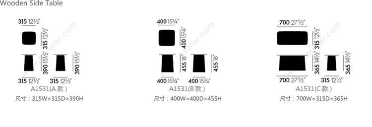Wooden Side Table 系列尺寸/示意图
