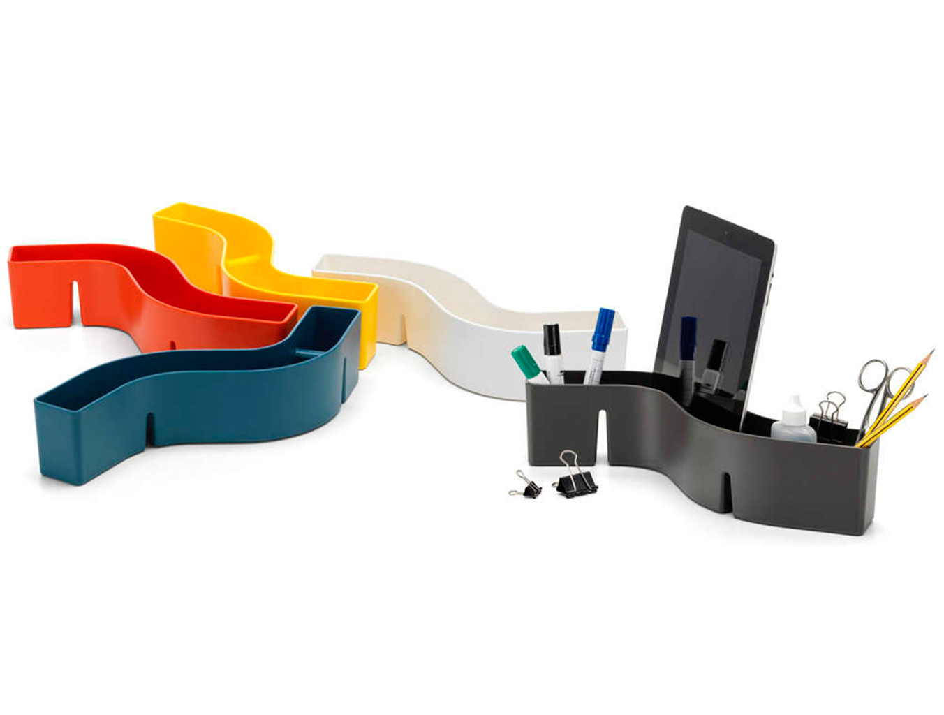 Michel Charlot设计的办公配件为通常朴素的办公环境带来了不寻常的有机形设计。 受到卡通和雕塑的启发,不同的容器增添了欢快的触感,可以照亮任何场景。