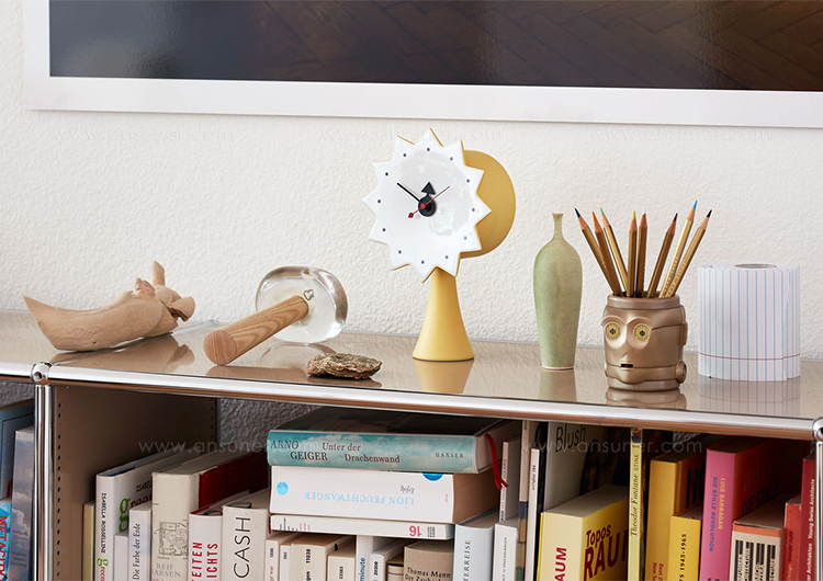 信仰进步和日益增长的经济繁荣是1950年左右美国生活方式的核心方面。一切似乎都有可能,人们努力做到“现代”。 为了将现代设计融入美国家庭,乔治·尼尔森构思了各种日常用品:灯具,钟表和其他家居饰品。 直到20世纪70年代,尼尔森办公室为家庭创造了许多不同的物品,包括泡泡灯和球钟,它们成为了本世纪中期现代设计的象征。