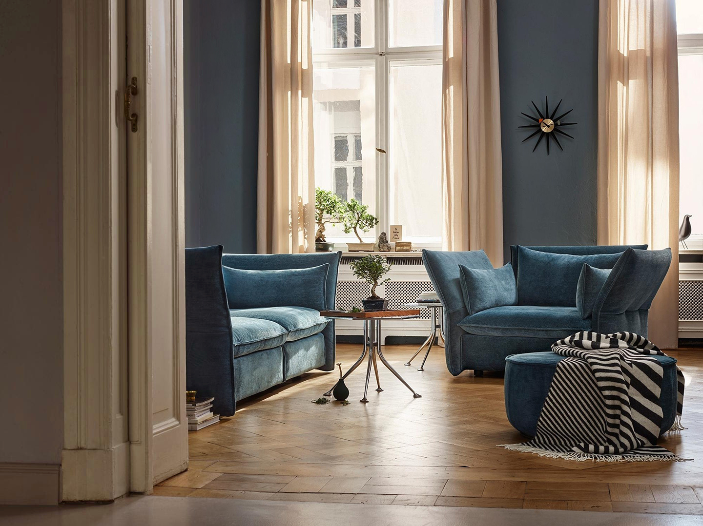 Girard被认为是面料、颜色、图案和纹理的大师级设计师。他的六角形桌子的铝制顶部刻有几何图案,在墙上的光线反射中可以看到。这种有趣的效果与Girard装饰性边桌的冷酷金属美学相得益彰。