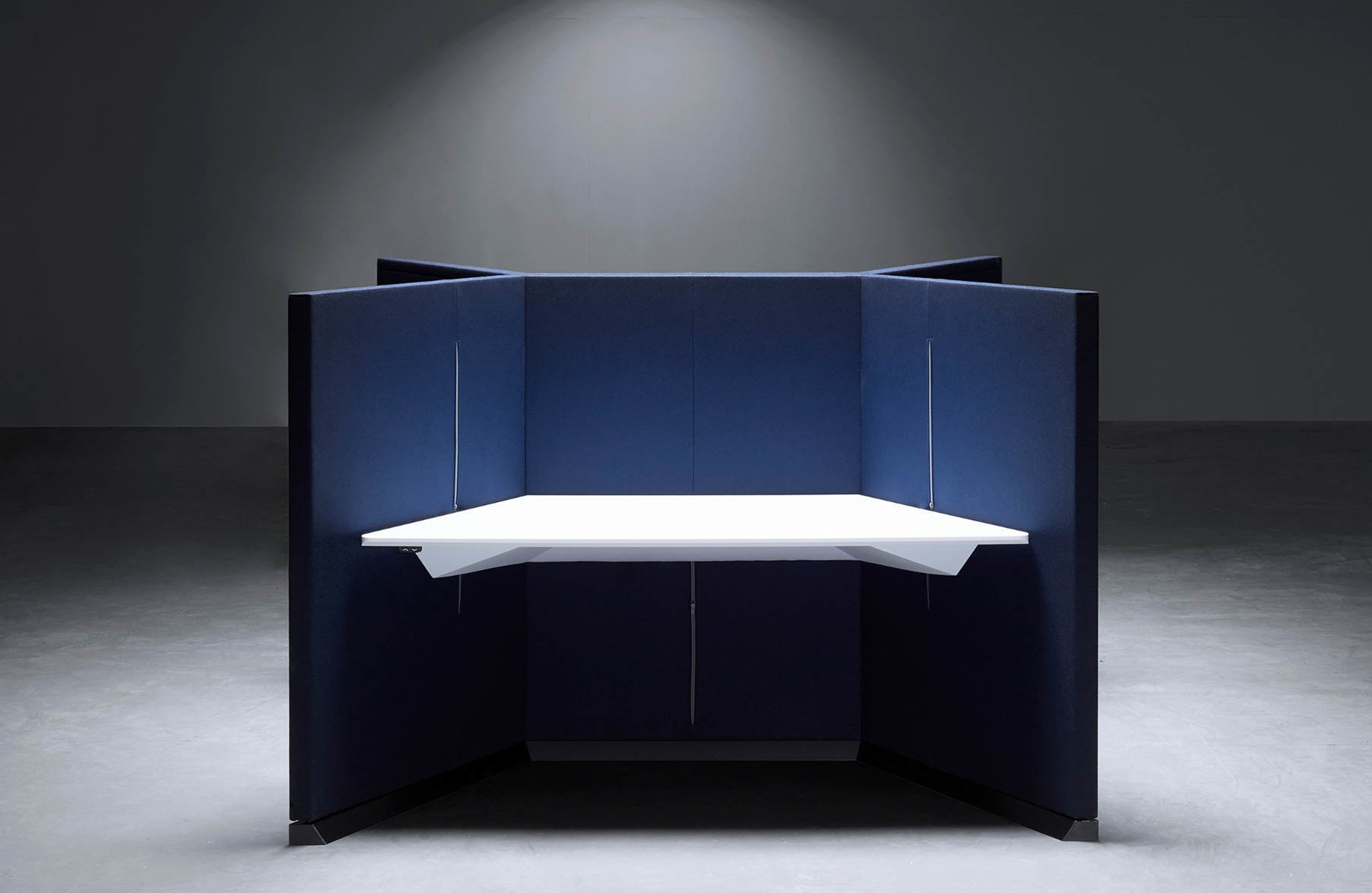 My Hive与其他工作站的区别在于它对细节的关注程度如何。Poul Christiansen不再使用腿部,而是将桌面整合到50毫米深的吸音屏幕中,从而释放空间。调节高度的机制隐藏在拉链后面。在桌子下面,有一个智能电缆盒。