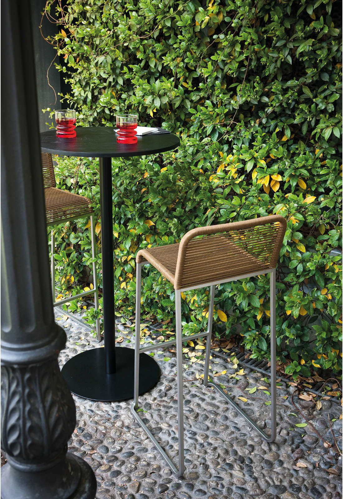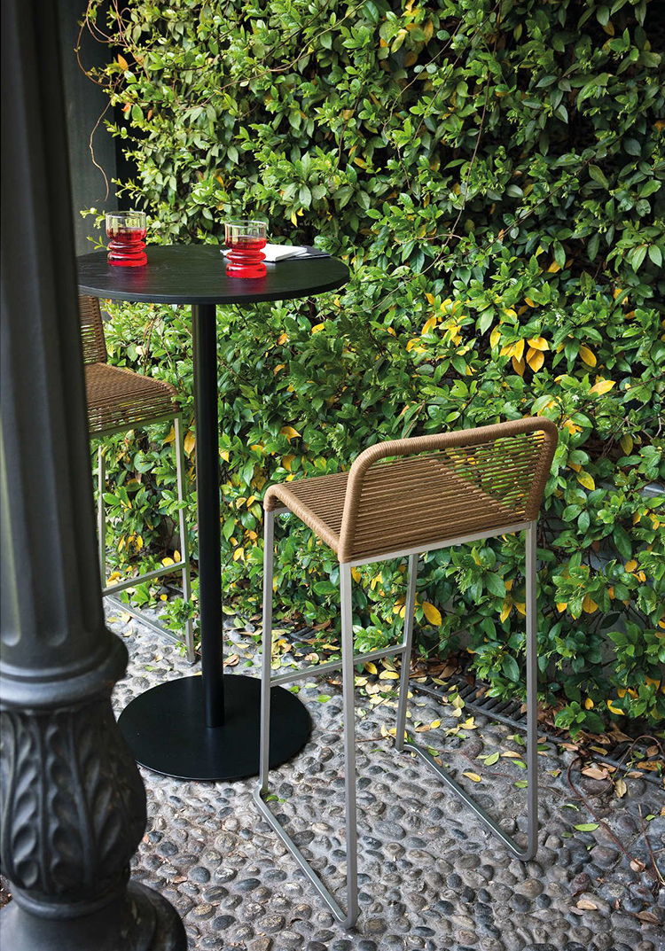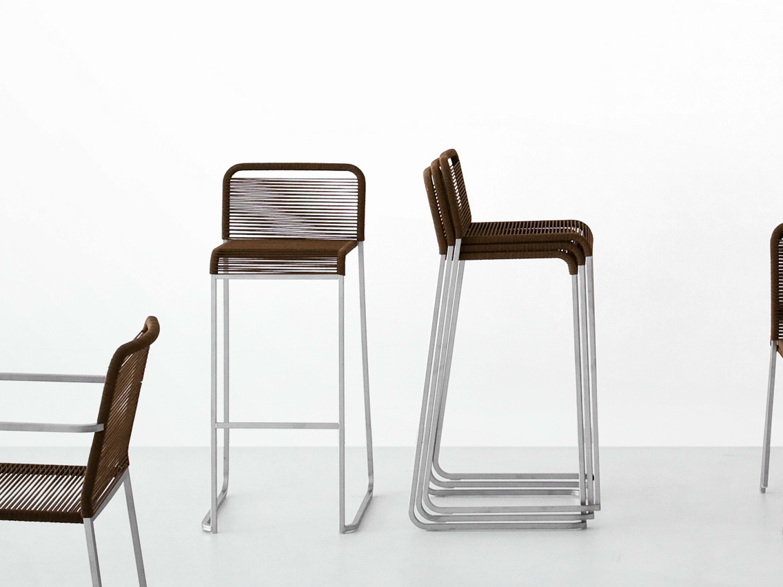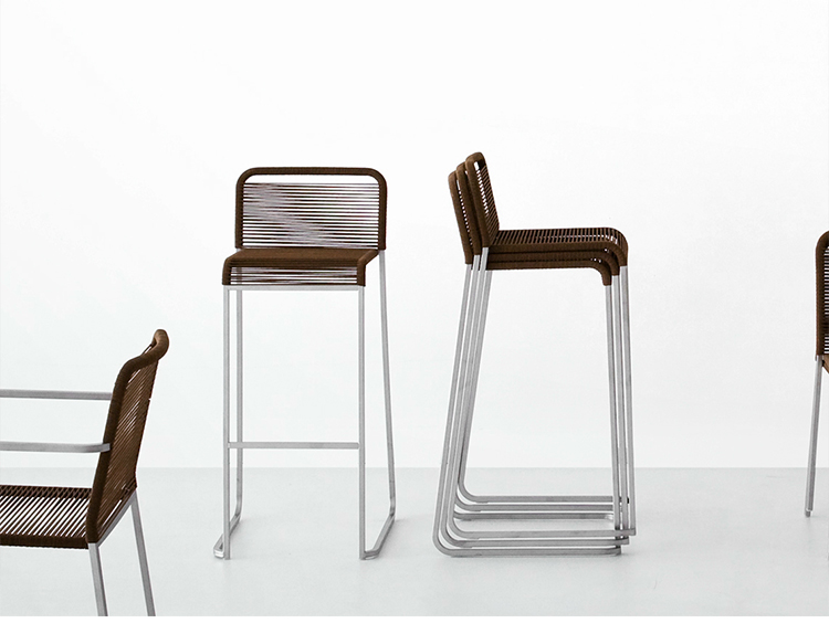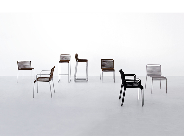 该金属框架完美匹配绳与棉质饰面,使堆叠的ARIA凳子一个新的轻型家具项目,理想的日常使用在户外环境中,具有鲜明的特点。