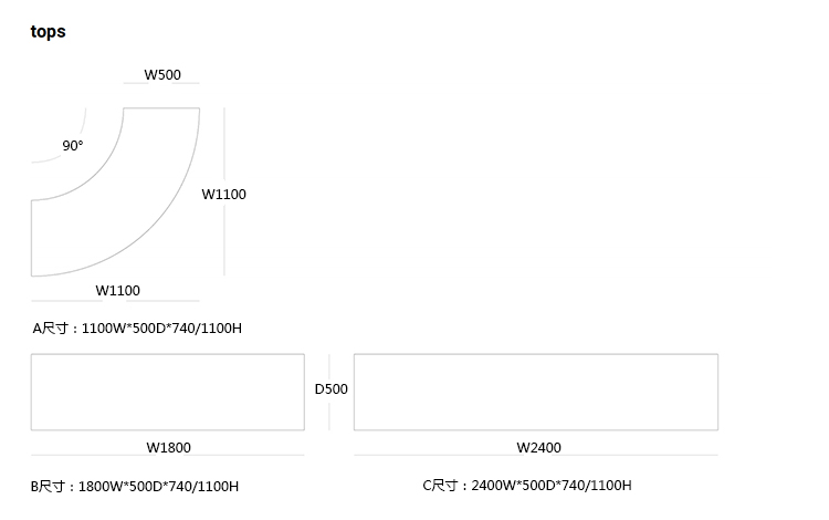 C:2400W*500D*740/1100H