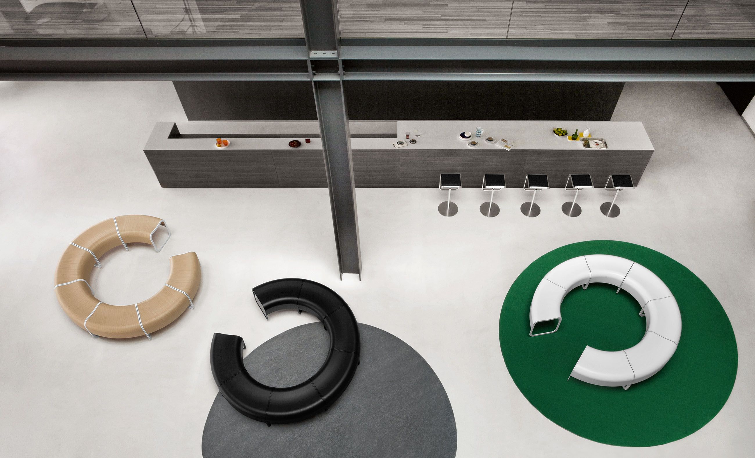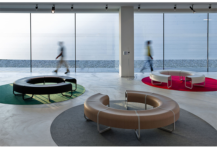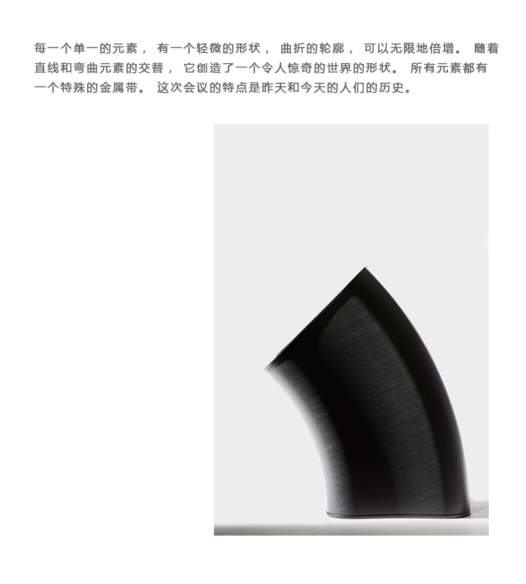 在日语中,“za”指的是一个安全的聚会场所,很久以前,寺院就是这样的地方。受这一古老的好客传统的启发,信和友子自上而下创造了一个优雅的座位系统,是等候区、博物馆和商店的理想选择。每一个单一的元素,有一个轻微的形状,曲折的轮廓,可以无限地倍增。随着直线和弯曲元素的交替,它创造了一个令人惊奇的世界的形状。所有元素都有一个特殊的金属带。这次会议的特点是昨天和今天的人们的历史。