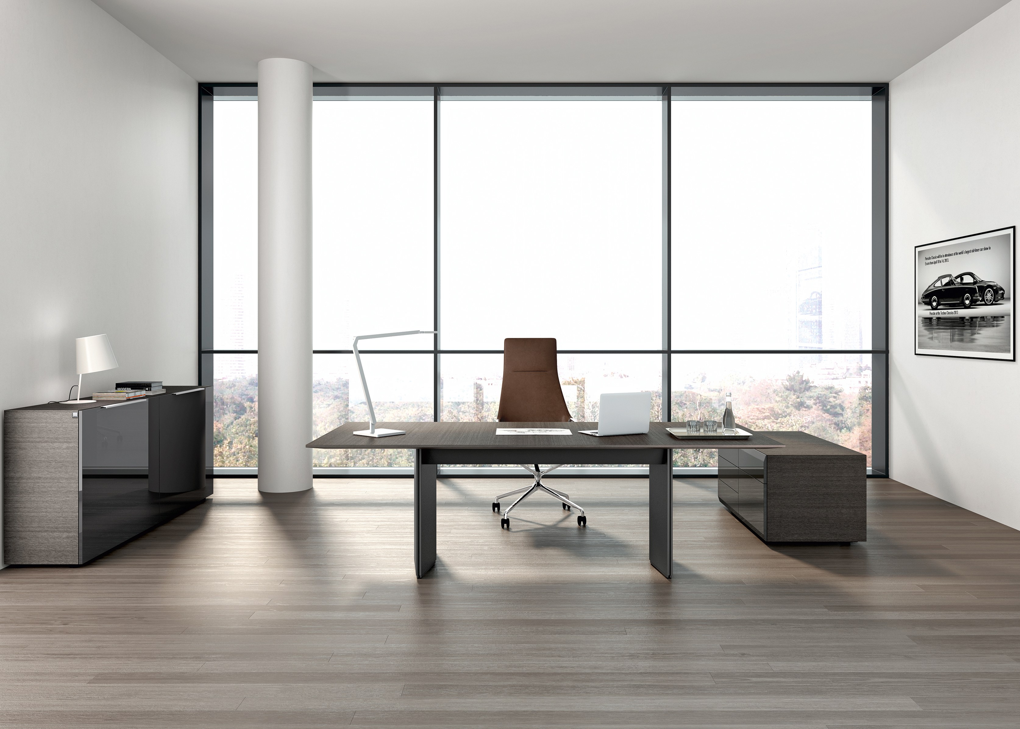 精心设计的工作表面,可调节到不同的高度,其形式在第一眼看上去就不一样了。 不显眼的功能细节连接优雅的外观和出色的做工,提供了绝对的稳定和最大的底部空间。桌面似乎漂浮在基座上, 有各种各样的尺寸,饰面和精致的贴面。电缆和驱动器隐藏在优雅的漆面漆的侧面板后面。匹配的容器和侧板是完美的补充,既增加了功能又增加了气氛。