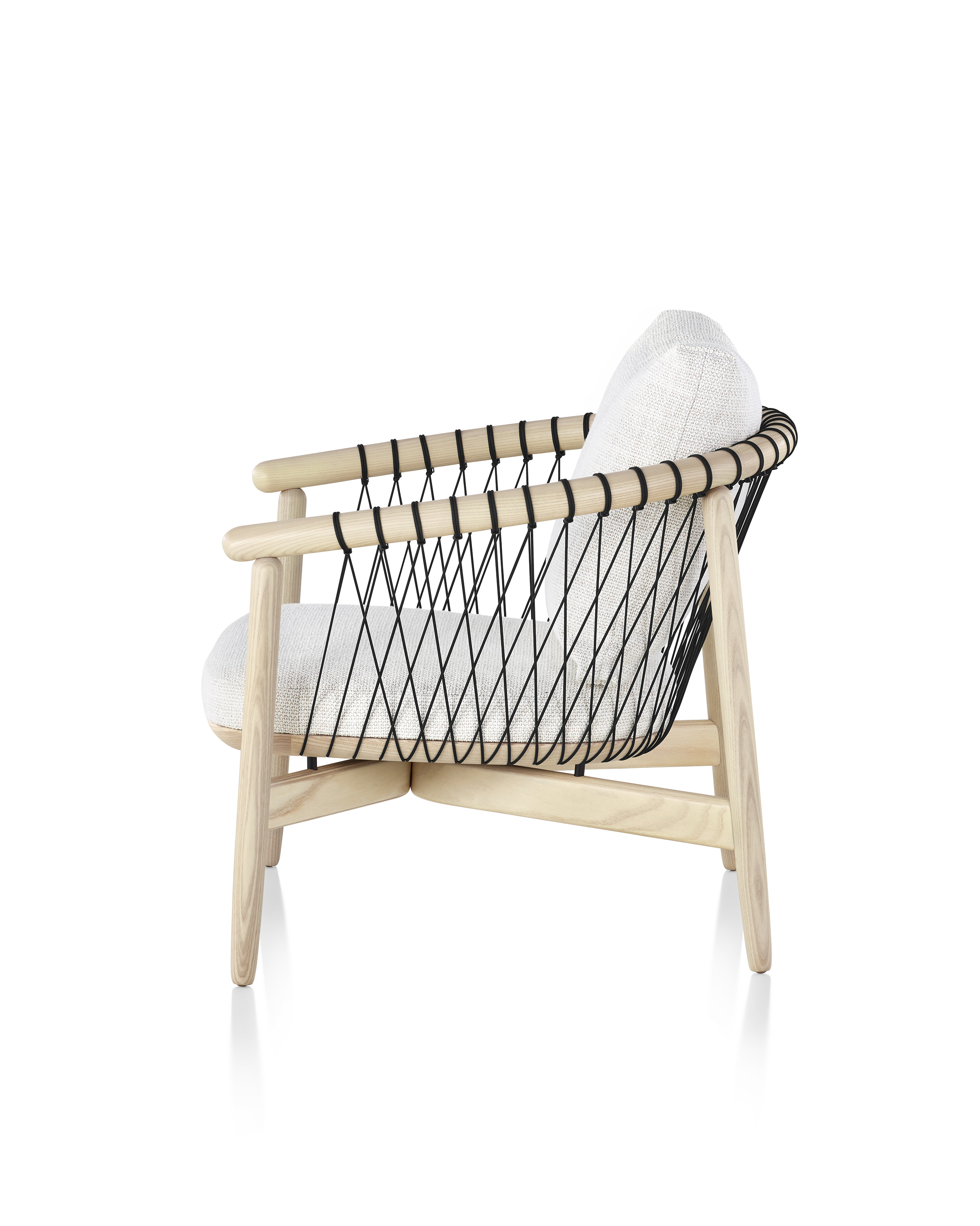 降落伞绳索,一种常见的工业产品,是其设计的一个组成部分。被拉下后,这些电线形成了一个内部张力系统,并提供必要的背部支撑,创造了一种被封闭在一个舒适的、保护性的鸟巢中的感觉。由于其简单、经典的外形,十字形座椅可以在各种环境下工作,从行政办公室或接待区到曼哈顿的顶层公寓或郊区客厅。
