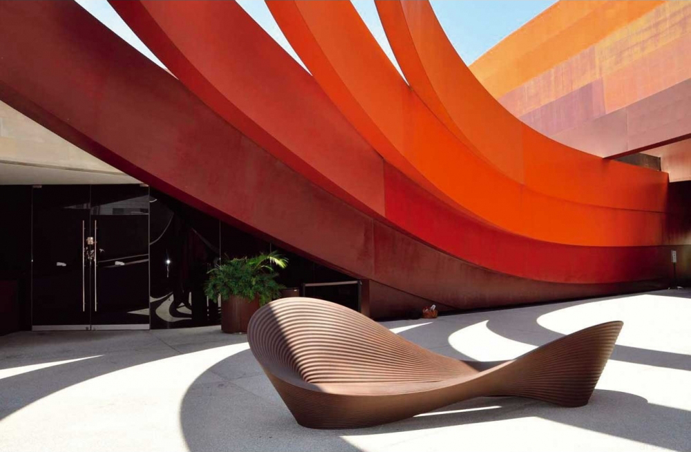 罗恩·阿拉德(Ron Arad)的福利长椅波浪形、雕塑般的造型将在提供一个舒适的聊天场所的同时引发人们的讨论。在室内和室外都用几乎坚不可摧的聚乙烯制成,长椅的座椅和后座无缝融合,鼓励人们以任何方式休息。