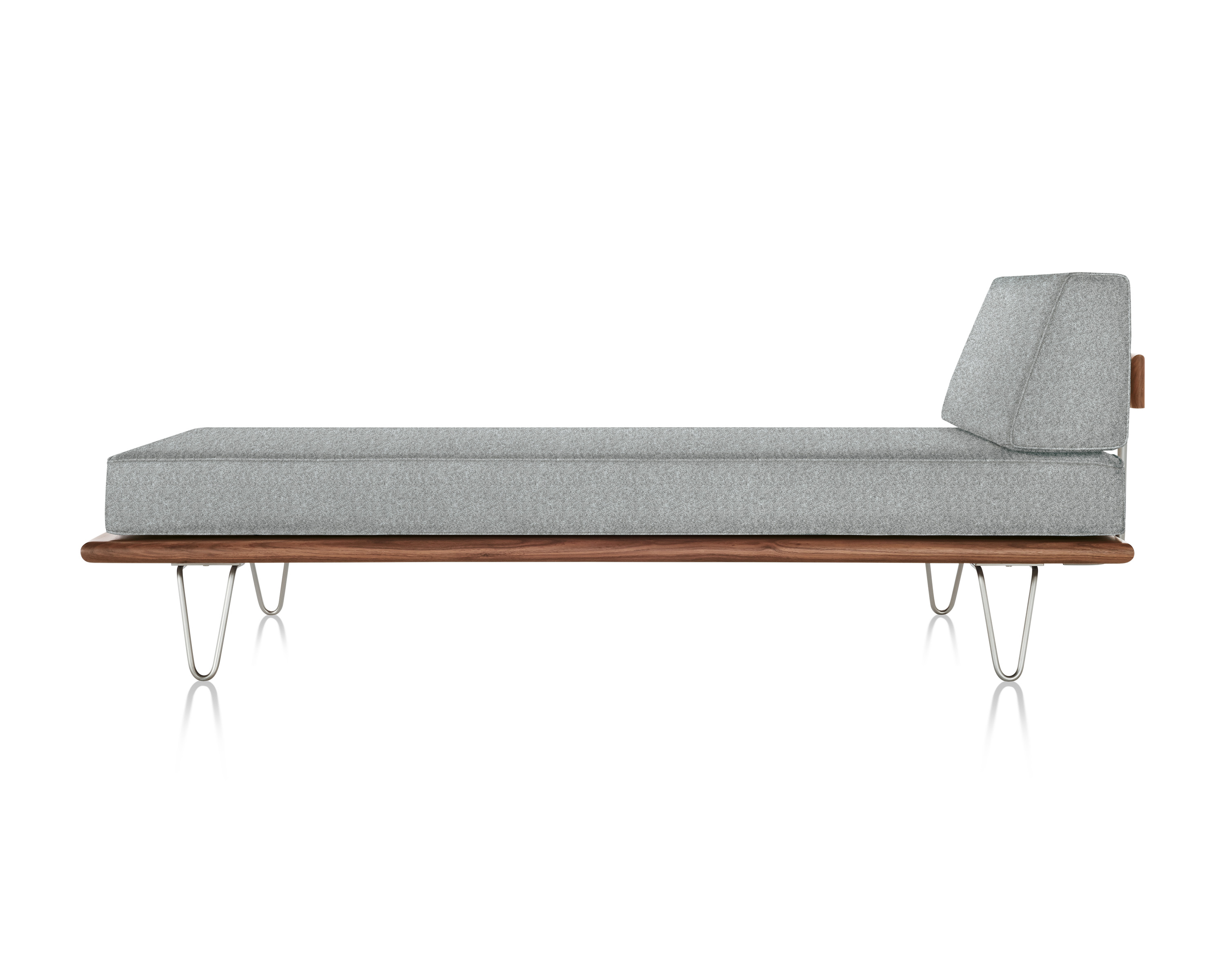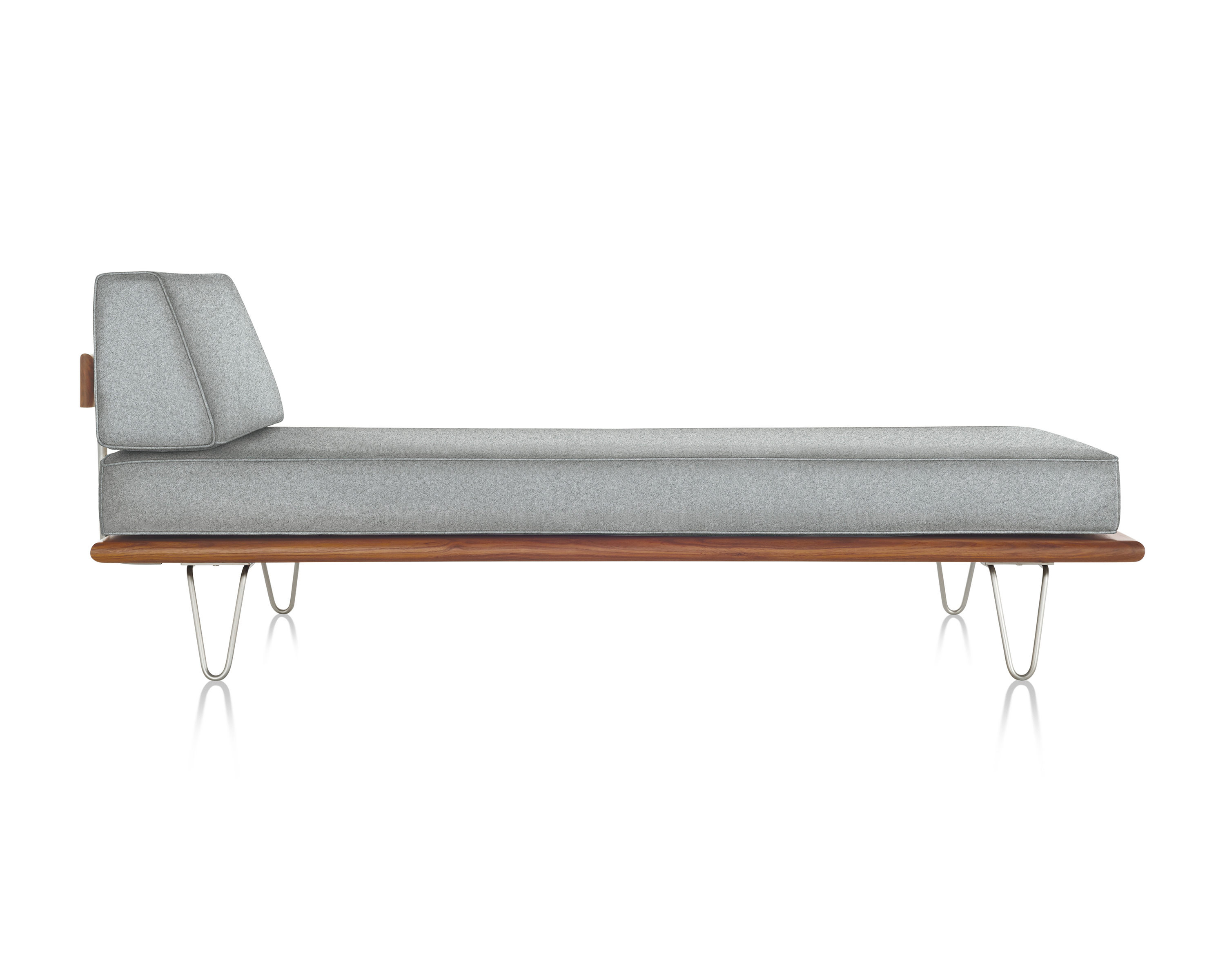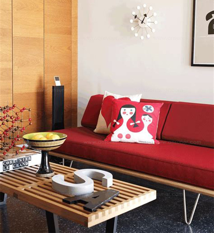最初由乔治?纳尔逊(George Nelson)于1950年设计,重新发行时保留了原有的规格和精心制作的细节,比如木质平台的倾斜边缘和垫子的圆形焊缝管道,这是区别于仿制品的一个特征。不锈钢发夹腿或锥形木腿给它的经典纳尔逊触摸。缓冲增强了双密度泡沫,以更多的支持和耐久性,同时保持其轻质美学。随着住宅和公寓的面积不断缩小,纳尔逊牌(Nelson)躺椅等多功能家具为任何房间增添了一种实用而精致的感觉。