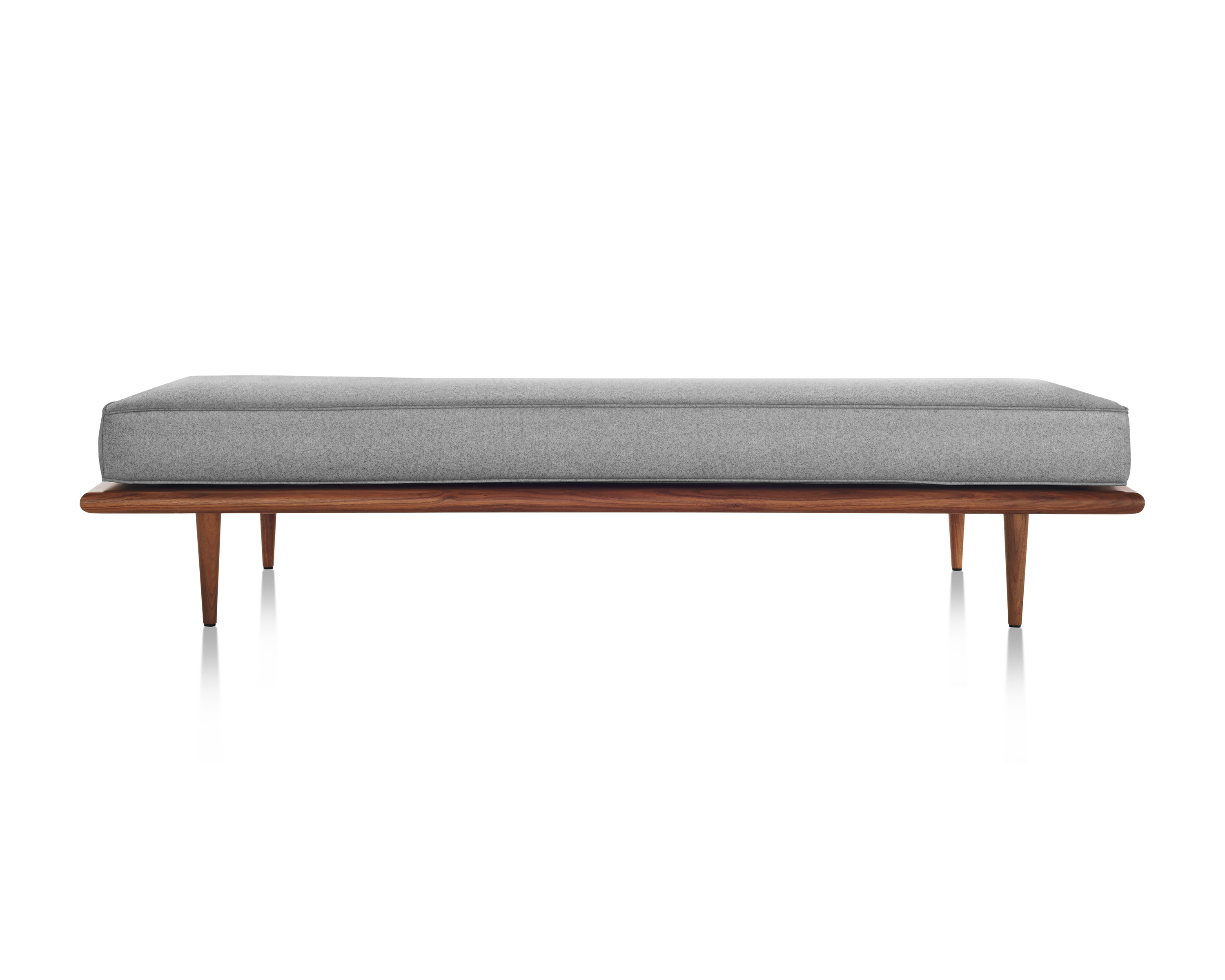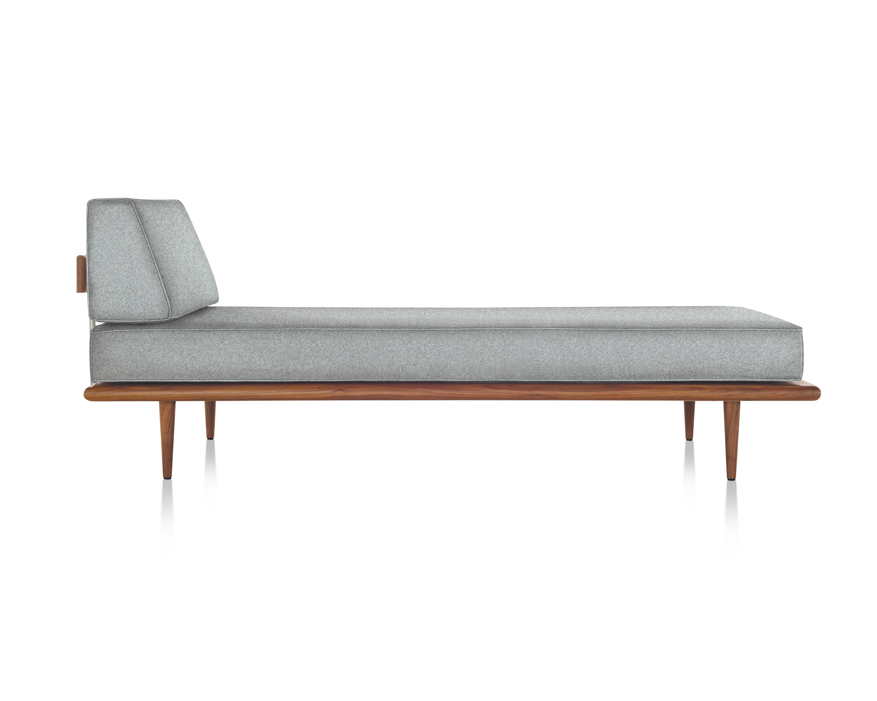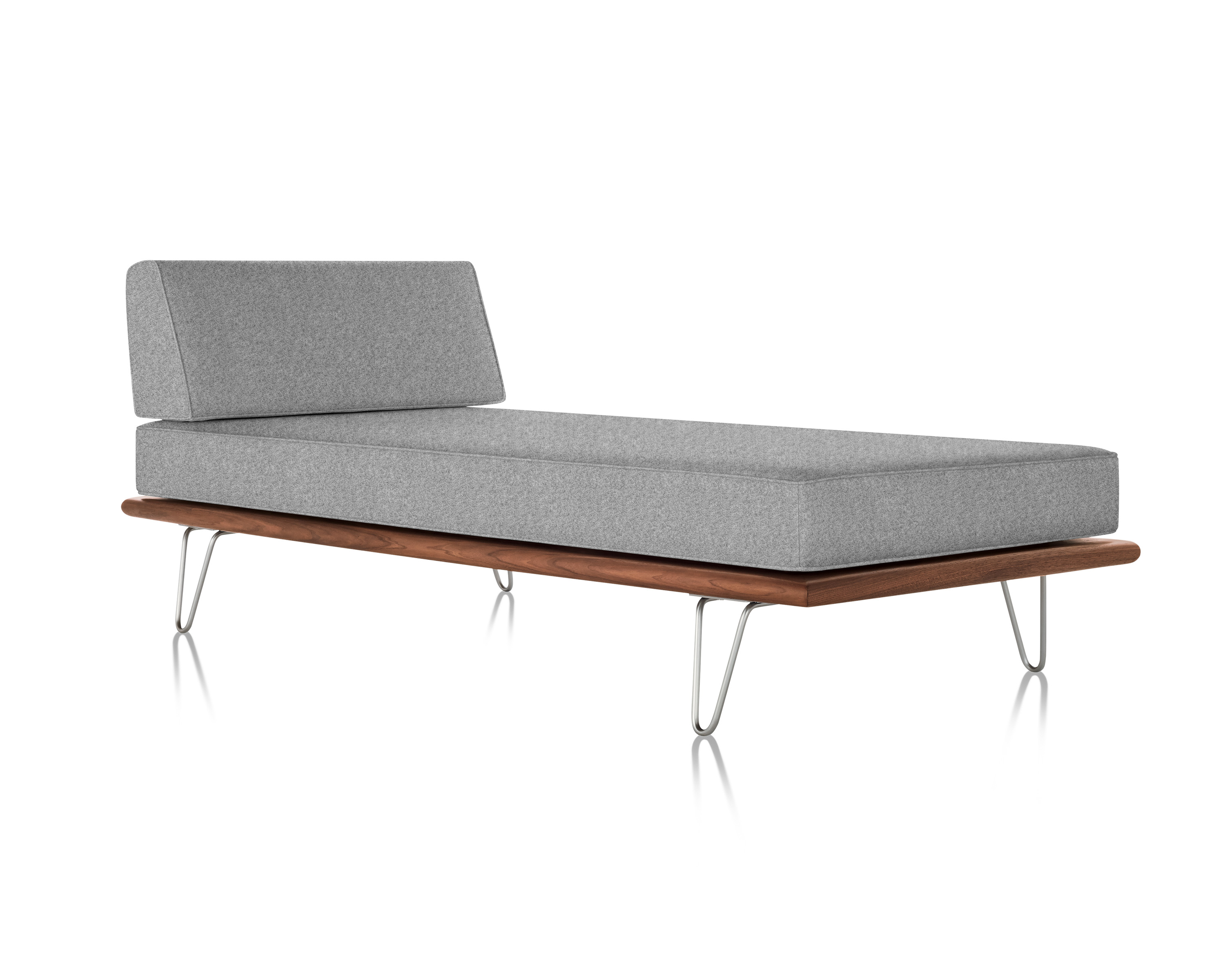 最初由乔治?纳尔逊(George Nelson)于1950年设计,重新发行时保留了原有的规格和精心制作的细节,比如木质平台的倾斜边缘和垫子的圆形焊缝管道,这是区别于仿制品的一个特征。不锈钢发夹腿或锥形木腿给它的经典纳尔逊触摸。缓冲增强了双密度泡沫,以更多的支持和耐久性,同时保持其轻质美学。随着住宅和公寓的面积不断缩小,纳尔逊牌(Nelson)躺椅等多功能家具为任何房间增添了一种实用而精致的感觉。