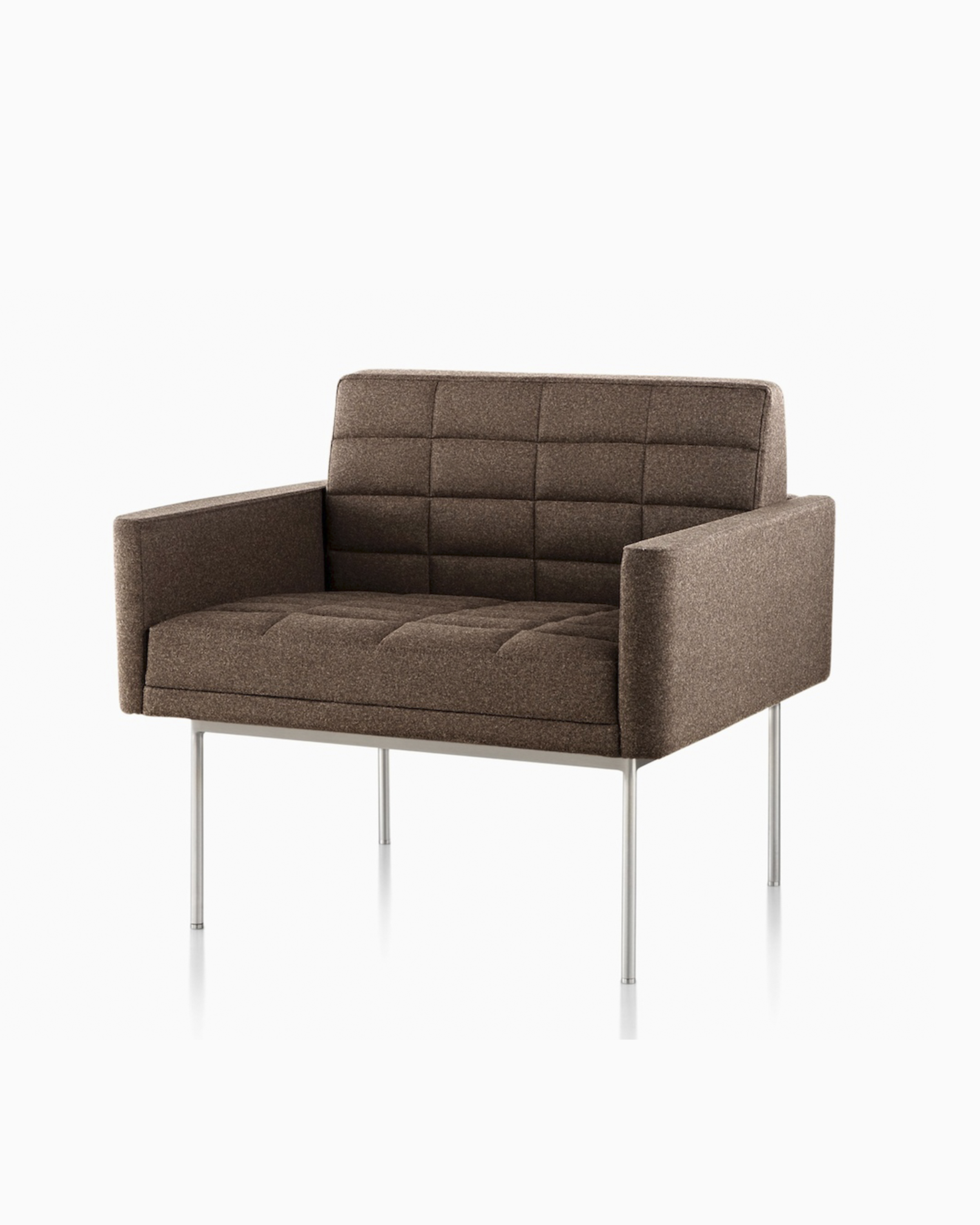 Tuxedo Lounge Seating设计用于固定休息室空间而不会在视觉上压倒周围环境,其精确的比例和精致细节。椅子可带或不带扶手,可在舒适的高度上提供深座椅。设计所依据的网格也允许Tuxedo Lounge Seating与Tuxedo系列中的其他部件(包括沙发椅,长凳和沙发)轻松配合。