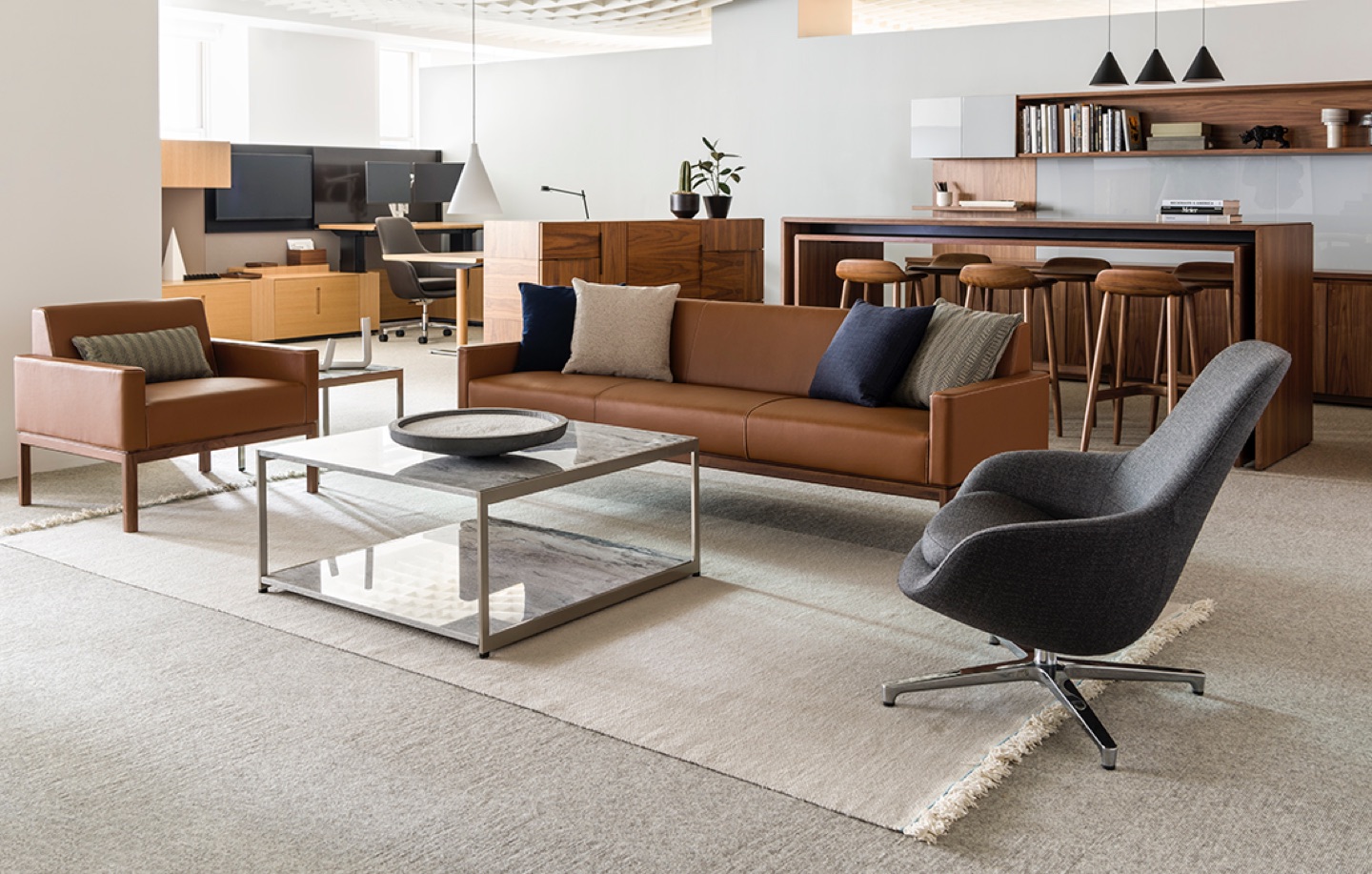 干净休闲的Wood Base Lounge Seating剪裁出适合轻松休息室环境的宁静轮廓。 BassamFellows围绕两个关键元素设计了这个系列:一个坚固但纤细的木制框架,宽腿设置和整齐的软垫座椅。 多功能设计有沙发,长椅,扶手椅和脚凳。