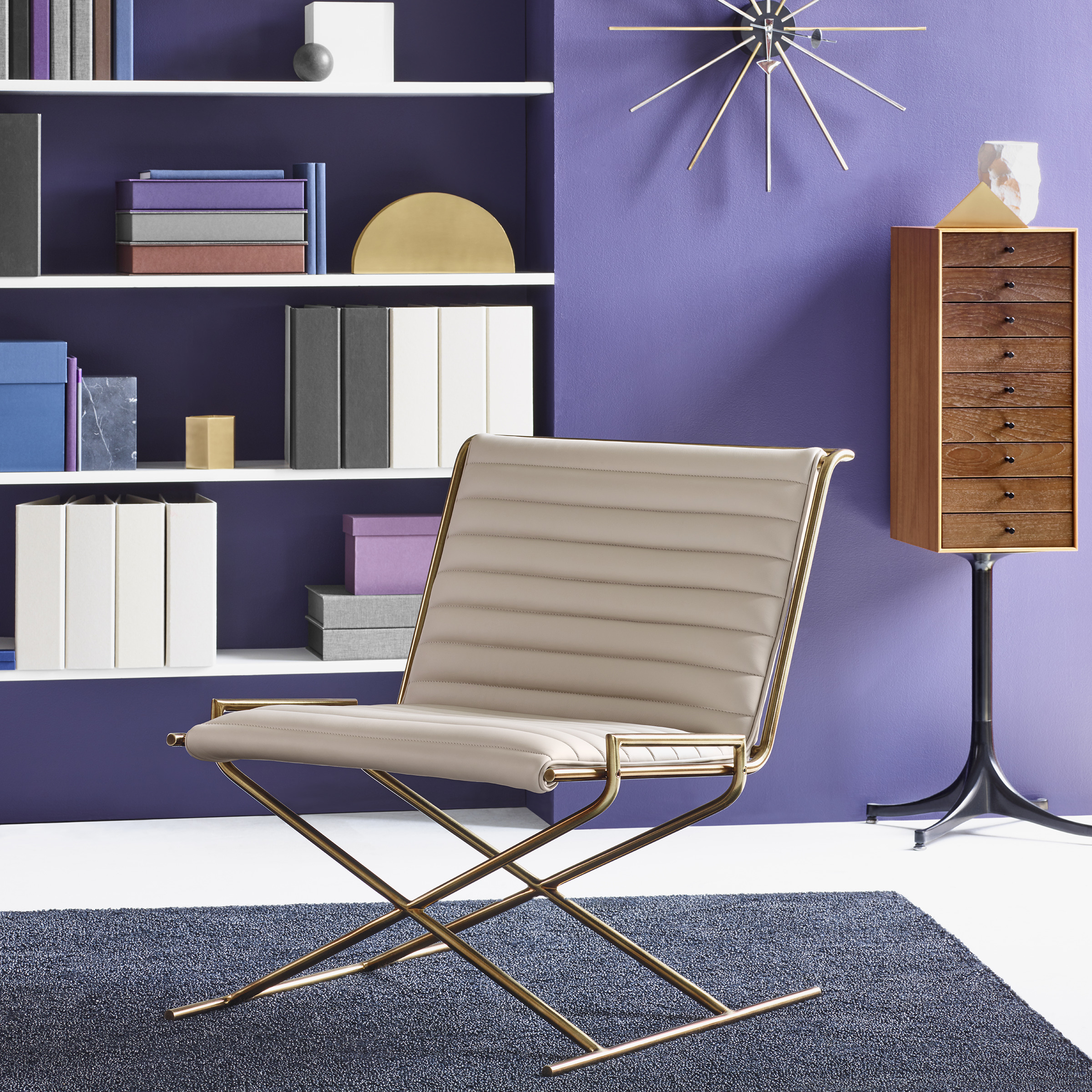 Ward Bennett Sled座椅的底座设计十分引人注意。用钢管焊接成一个X形,安装在平行的双轨之上,设计十分大胆。可选装饰有各种织物或皮革,Sled座椅座位和靠背就像一个摇篮,将就坐者环绕起来。独特的设计和惬意的舒适度是让Sled座椅从1966年流行至今的两大原因。