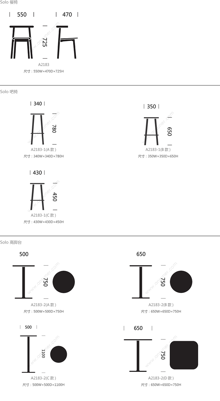 Solo 系列尺寸/示意图