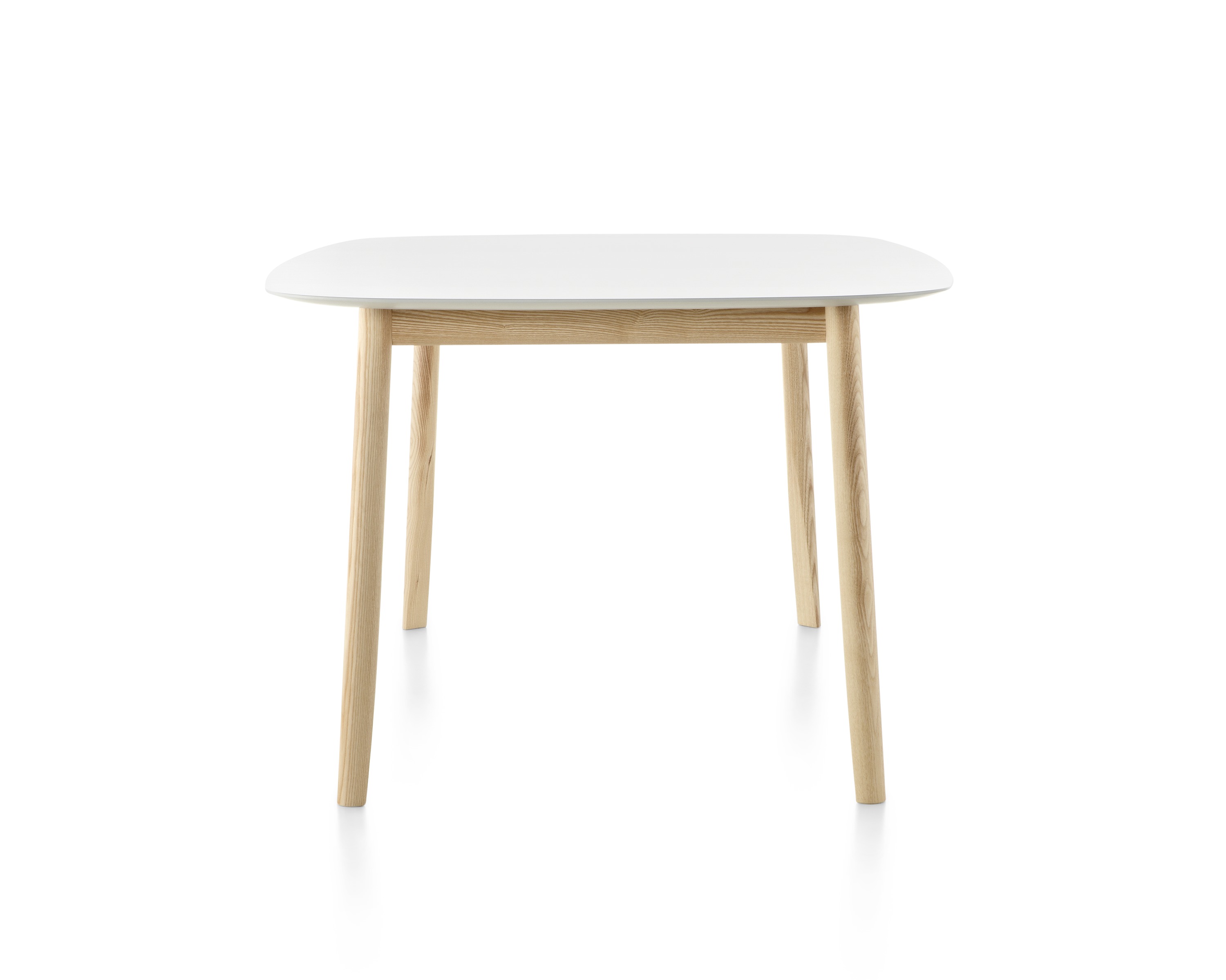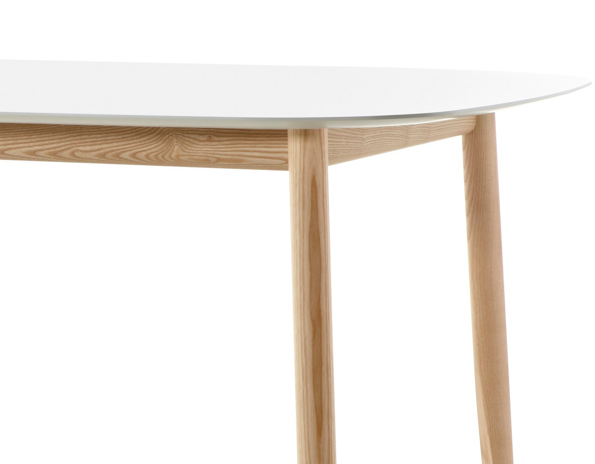 这张桌子有两种尺寸,腿和框架是实心的天然蜡灰,腿是雕刻和“切片”的,所以它们看起来很精致,而且很结实。光滑的顶部是中密度纤维板白色漆。