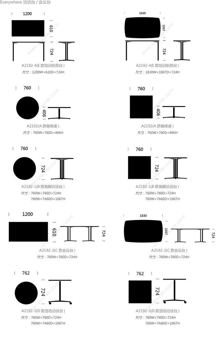 Everywhere 系列尺寸/示意图