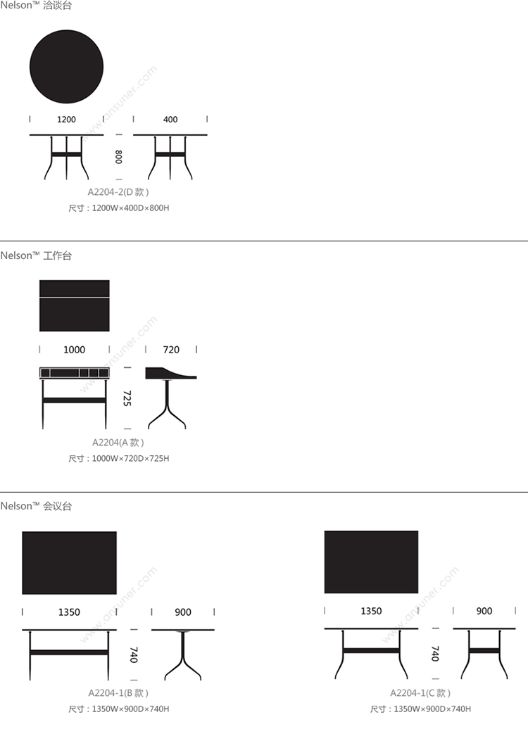 会议台|实木洽谈台|办公家具|设计师家具|纳尔逊™Swag Leg洽谈台