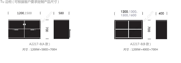 Tu 边柜 系列尺寸/示意图