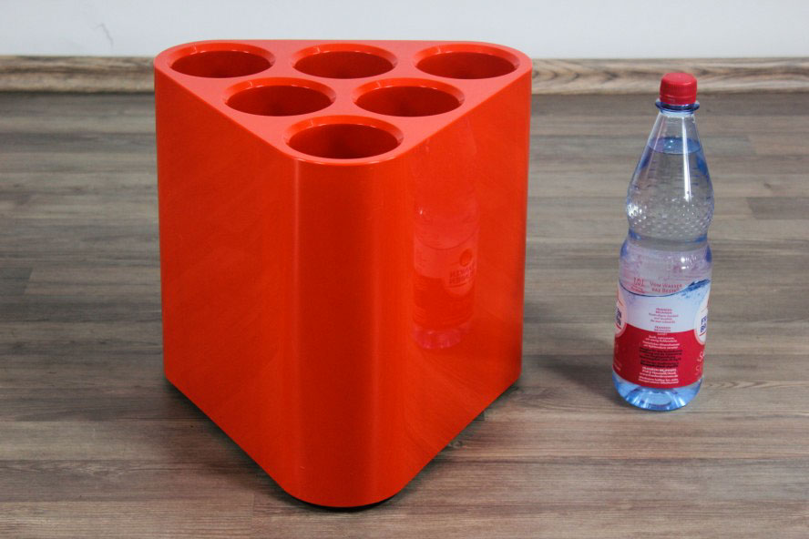 Magis的伞架允许长而短的雨伞在雨中冲入时容易弹出并存放。 其紧凑的尺寸和三角形的形状使其易于放置在入口通道或走廊中。 有橙色,白色和黑色可供选择。