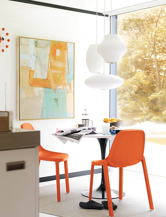 Nelson气泡灯是一组形形色色、具有球状轮廓的灯具,能散发出均匀柔和的光线。Nelson Saucer Bubble Pendant杯托型气泡吊灯宽大的形状及其不锈钢的下层结构能给人带来柔和流动的线条感,造型可爱,光线宜人,适合任何室内风格。本款吊灯有小号、中号、大号和加大号几种不同规格。George Nelson于1952年设计了这个系列的灯具,当时他偶然发现了一款瑞典吊灯,打算买回去放到自己办公室里使用。但那款吊灯高昂的价格让他犹豫了,却让他萌生出自己设计一个气泡灯系列的念头来。