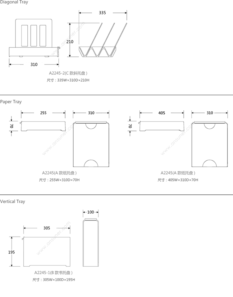 Diagonal Tray 系列尺寸/示意图