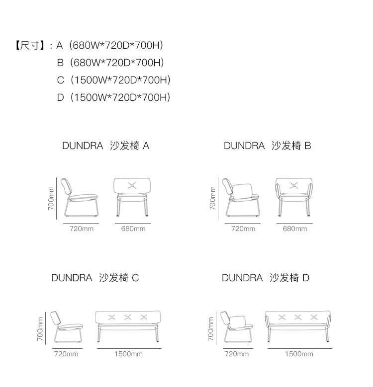 DUNDRA  沙发椅 系列尺寸/示意图