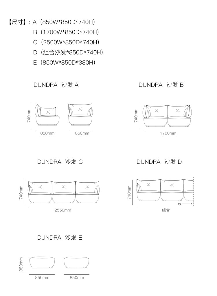 DUNDRA 沙发 系列尺寸/示意图