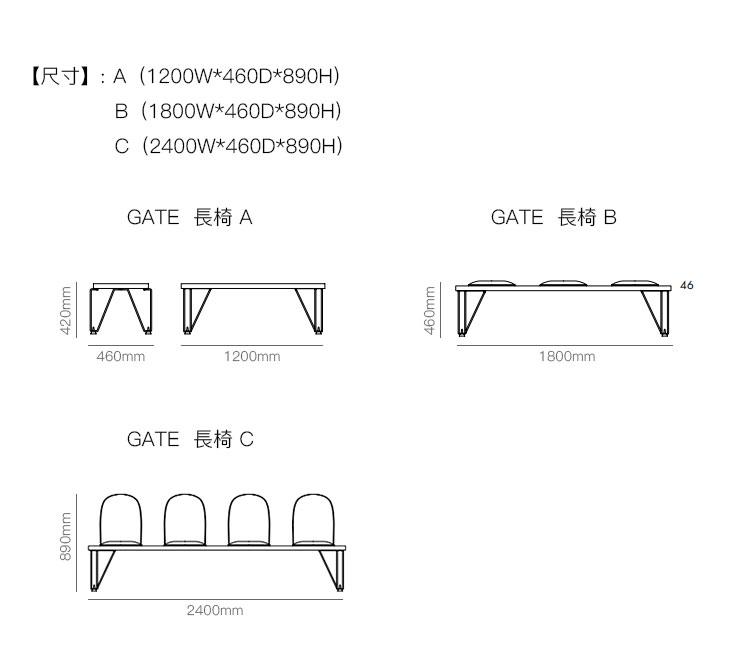 GATE  长椅 系列尺寸/示意图