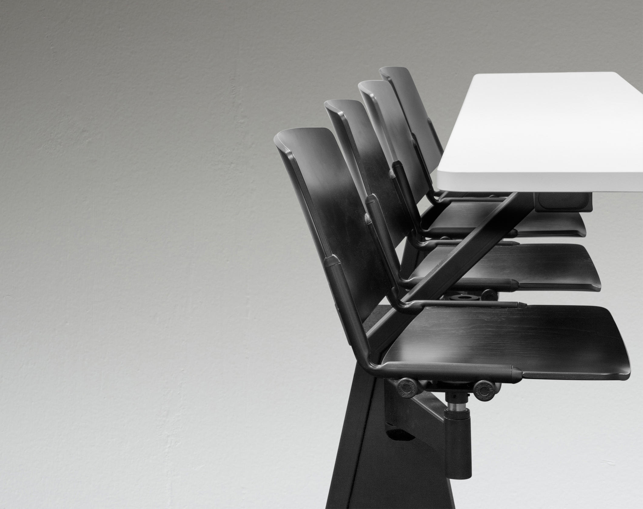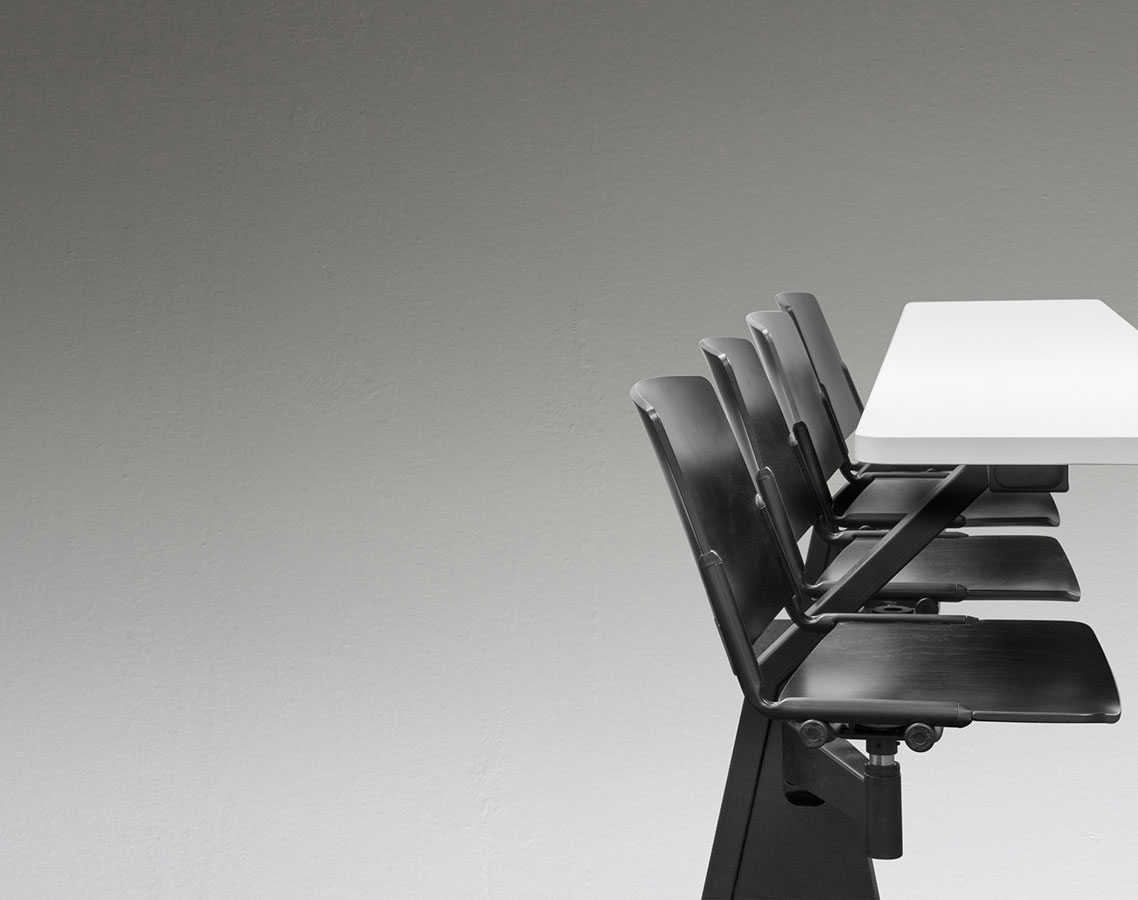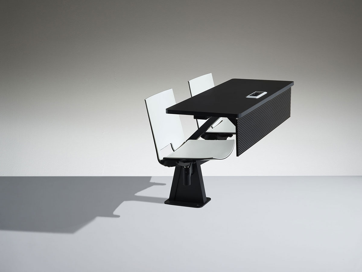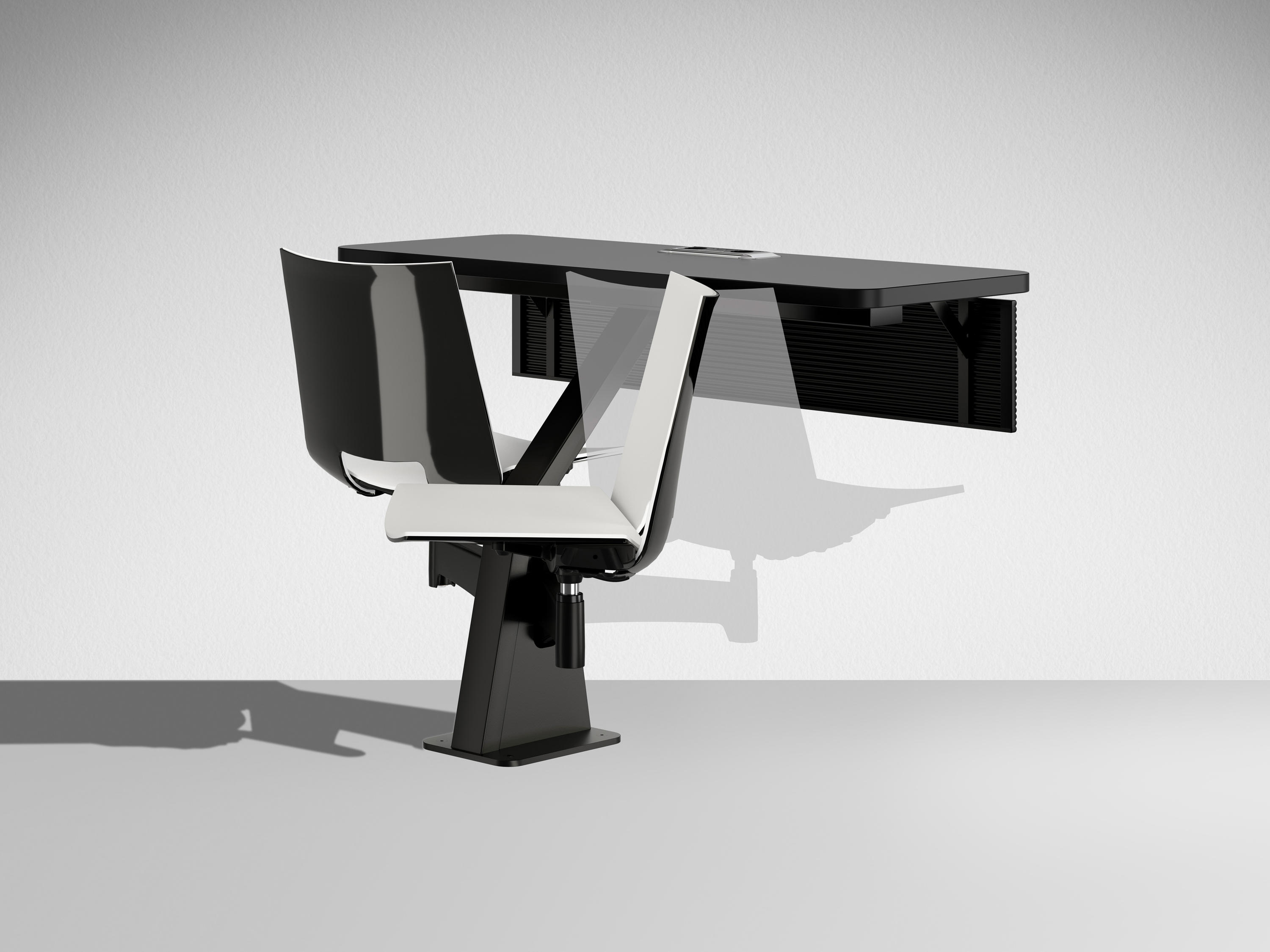 ST12-13家具是一件式系统,由两个可移动座椅和带压铸铝且喷漆的枢转臂组成。有2的倍数可用,可以定位在半圆或直行中。ST12-13家具系统可轻松放置在平坦的地板或架子上。 座椅支撑臂可提供64度的运动以及360度的旋转式座椅,并提供极大的运动自由度。通过在不同的行上,这提供了在同一个表上工作的可能性。 带ABS边缘的双层压板工作台面经过协调或电镀,深度为40cm。我们可以将电气化系统与在工作台或支撑结构上可触及的插头集成在一起。