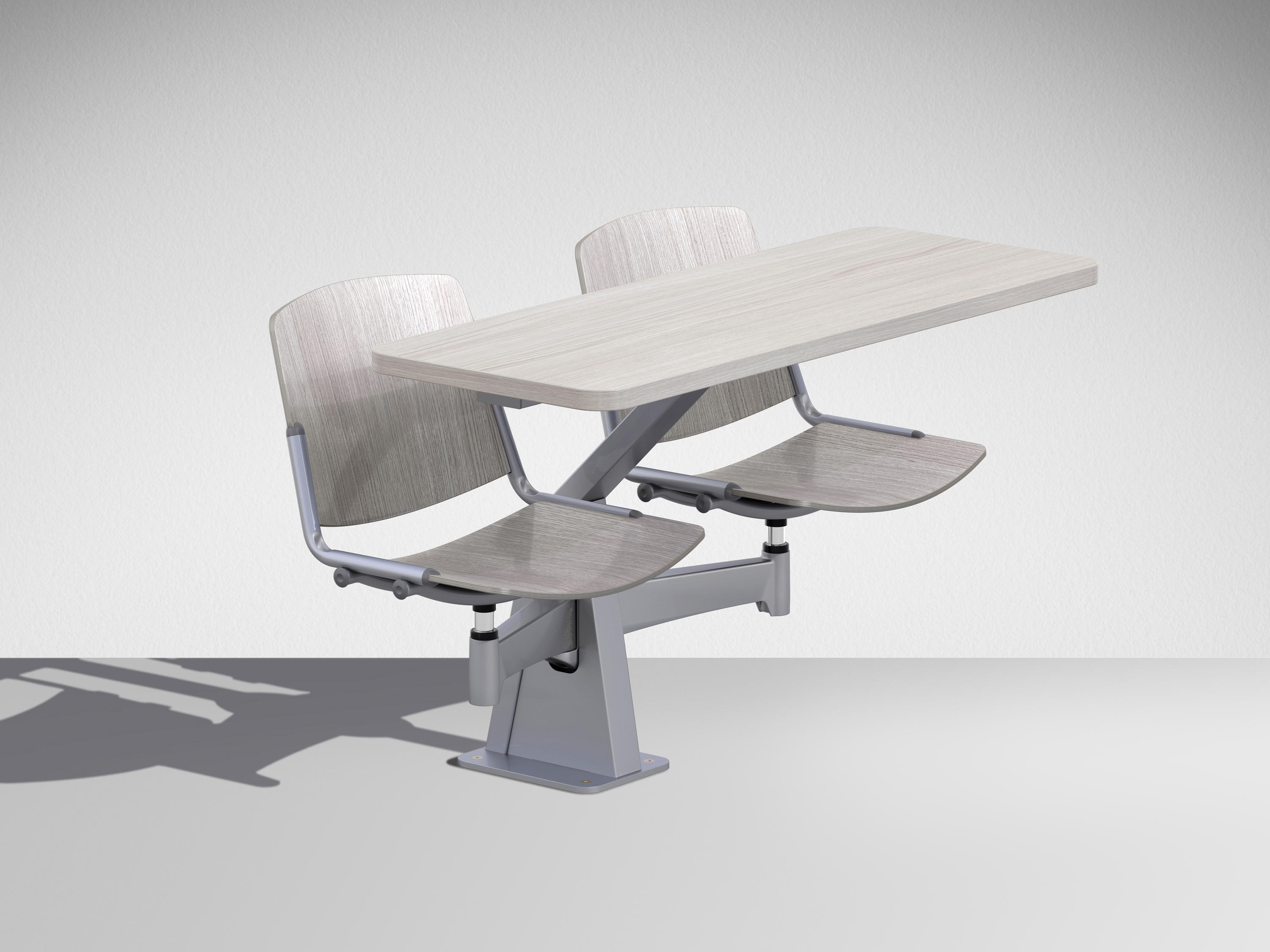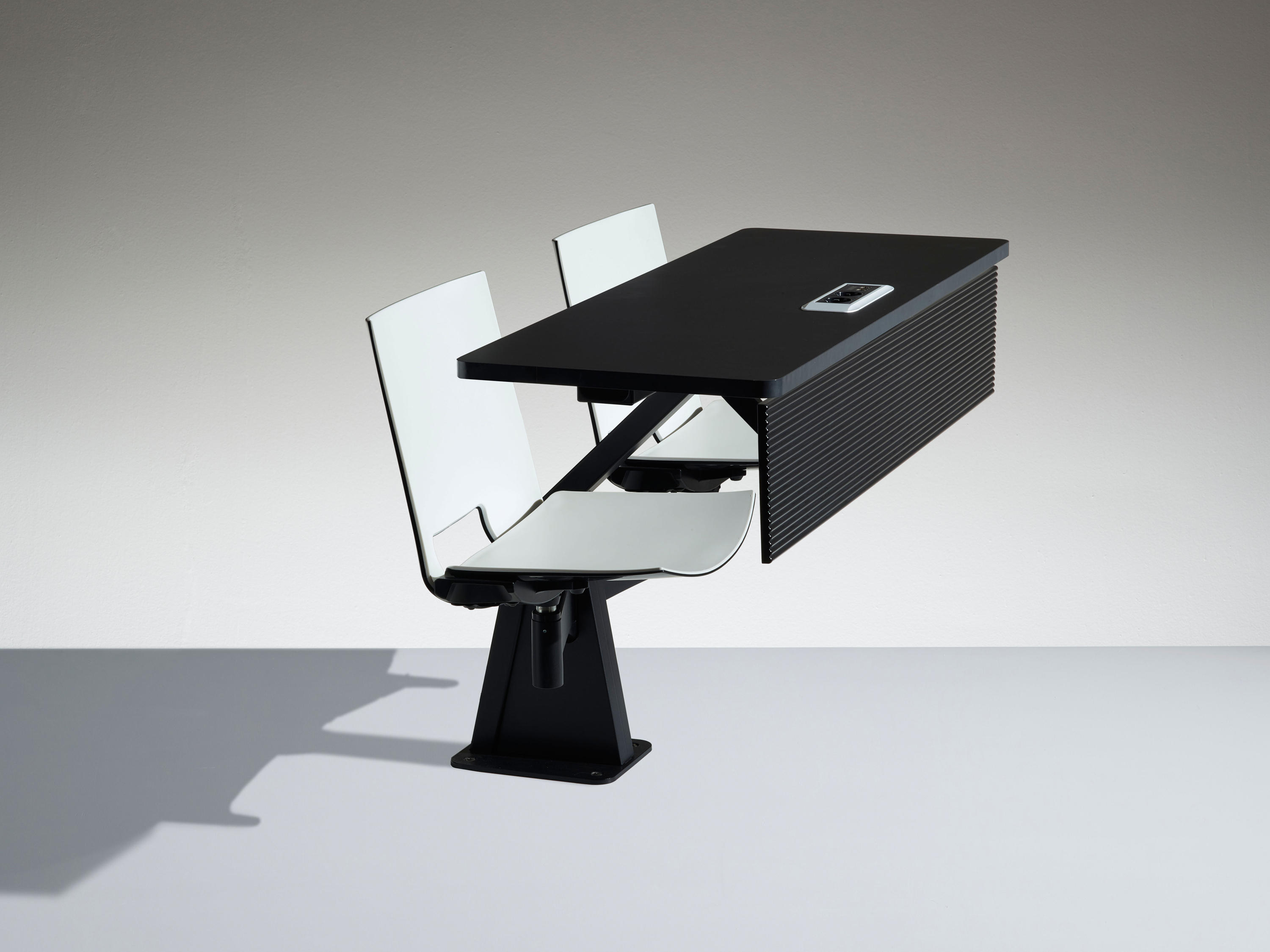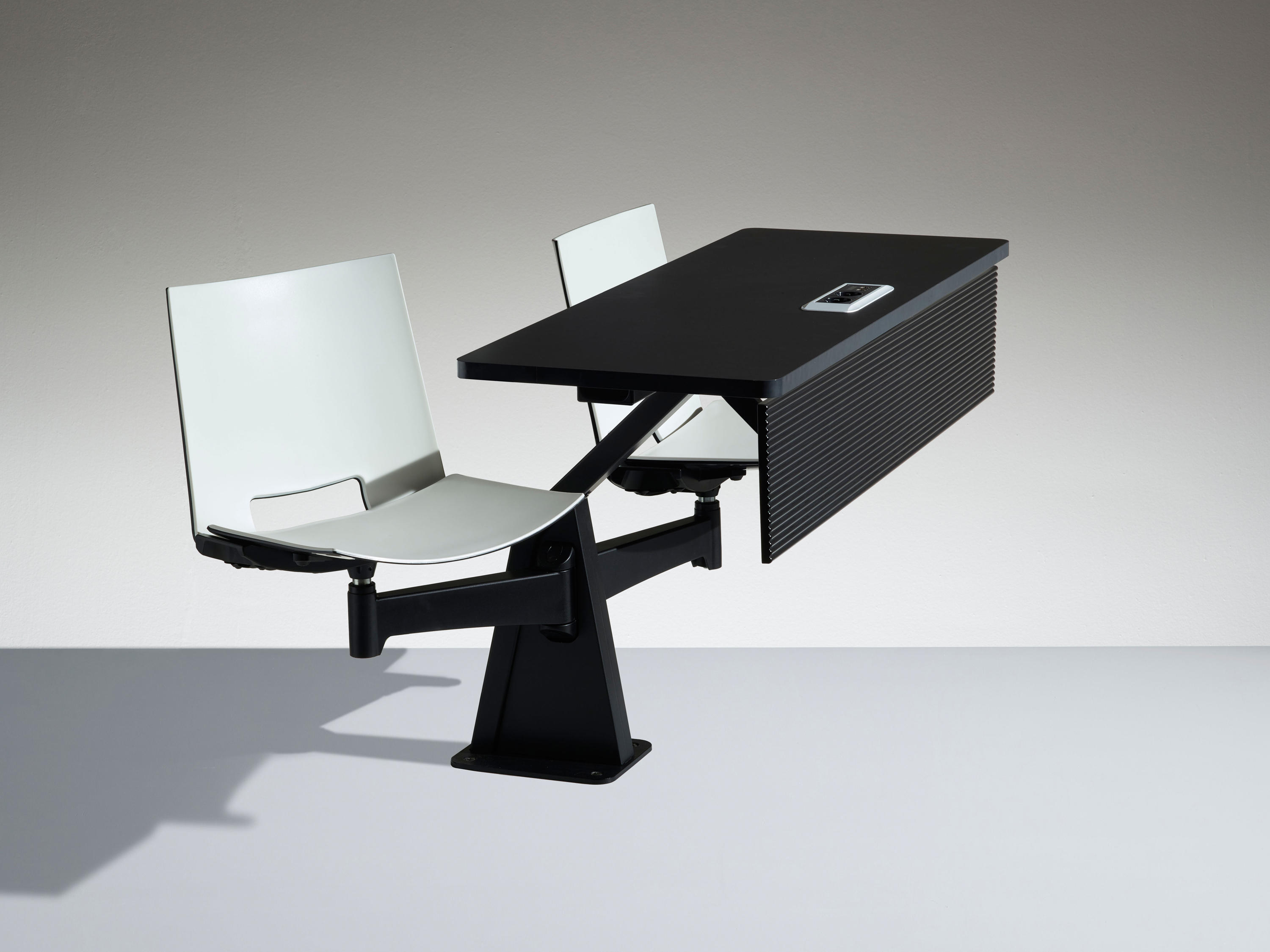 ST12-13家具是一件式系统,由两个可移动座椅和带压铸铝且喷漆的枢转臂组成。有2的倍数可用,可以定位在半圆或直行中。ST12-13家具系统可轻松放置在平坦的地板或架子上。 座椅支撑臂可提供64度的运动以及360度的旋转式座椅,并提供极大的运动自由度。通过在不同的行上,这提供了在同一个表上工作的可能性。 带ABS边缘的双层压板工作台面经过协调或电镀,深度为40cm。我们可以将电气化系统与在工作台或支撑结构上可触及的插头集成在一起。