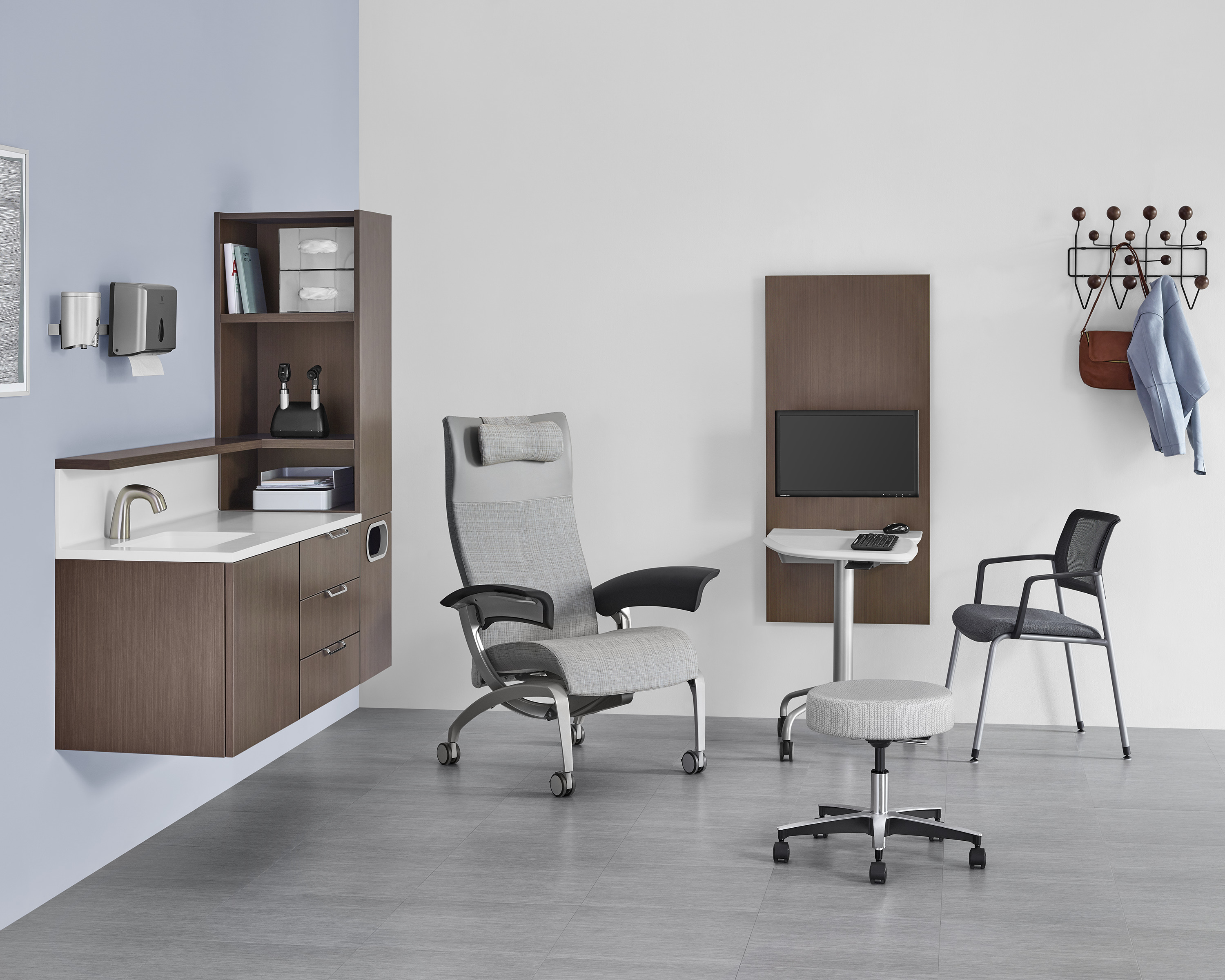 Intent Solution与综合墙系统。它们一起帮助检查室中的护理人员自然地使用各种技术——现在正在使用什么技术,接下来可能使用什么技术——因此它成为与患者交谈和保持谈话焦点的工具。这改善了每个人的经验,并建立信任。