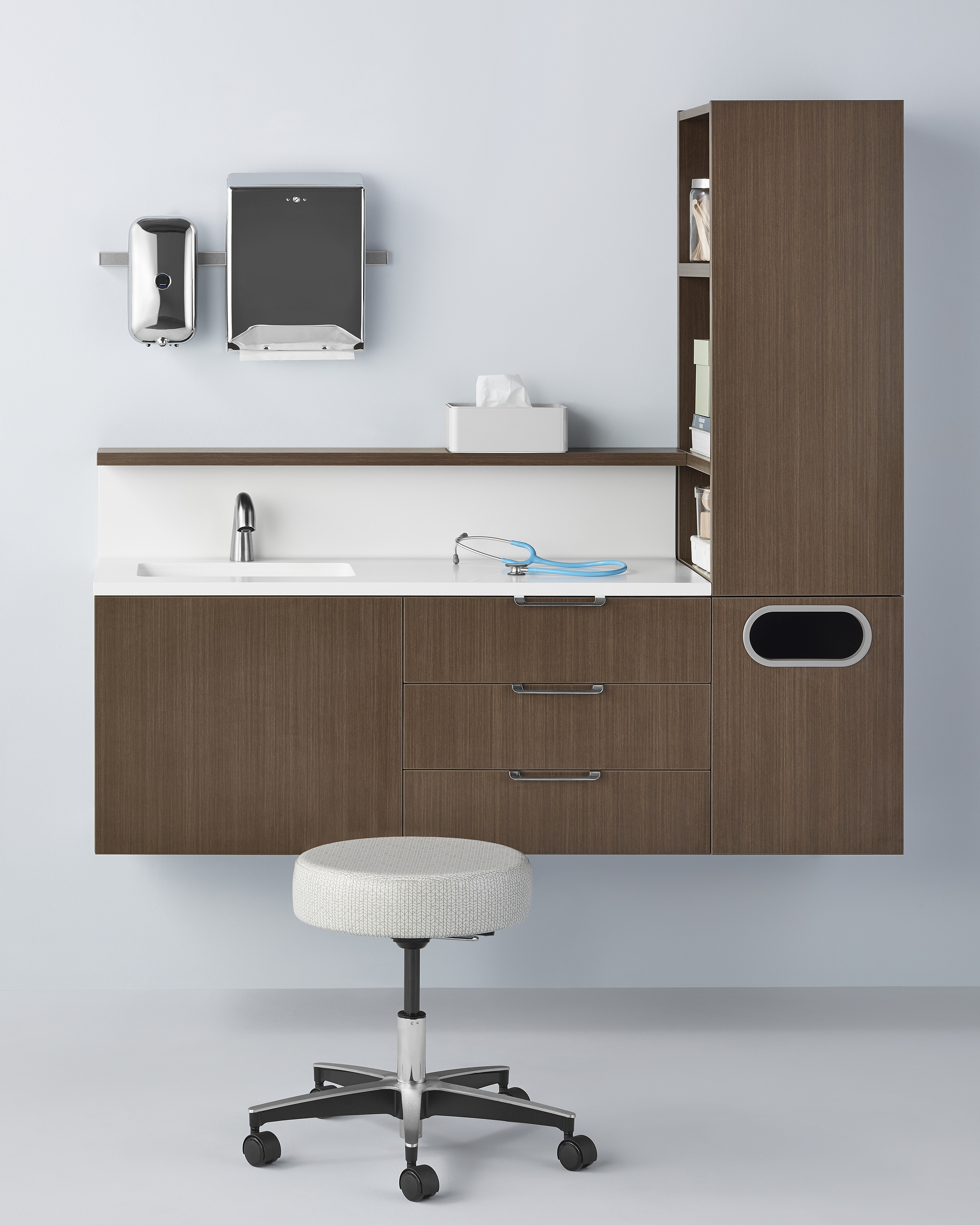 Mora旨在促进更好的临床关系 - 有目的地设计用于纠正基本存储问题并增强护理人员与患者之间的互动和关系。 虽然它解决了这些问题,但它的优雅美感在整个医疗保健领域的其他环境中也能够很好地工作。