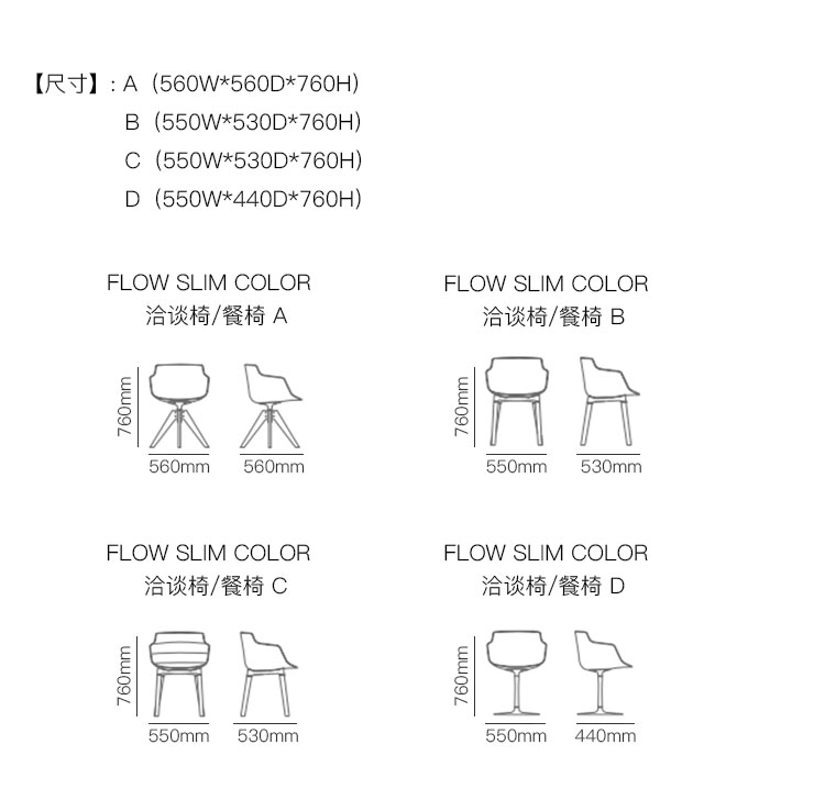 FLOW SLIM COLOR  洽谈椅/餐椅 系列尺寸/示意图