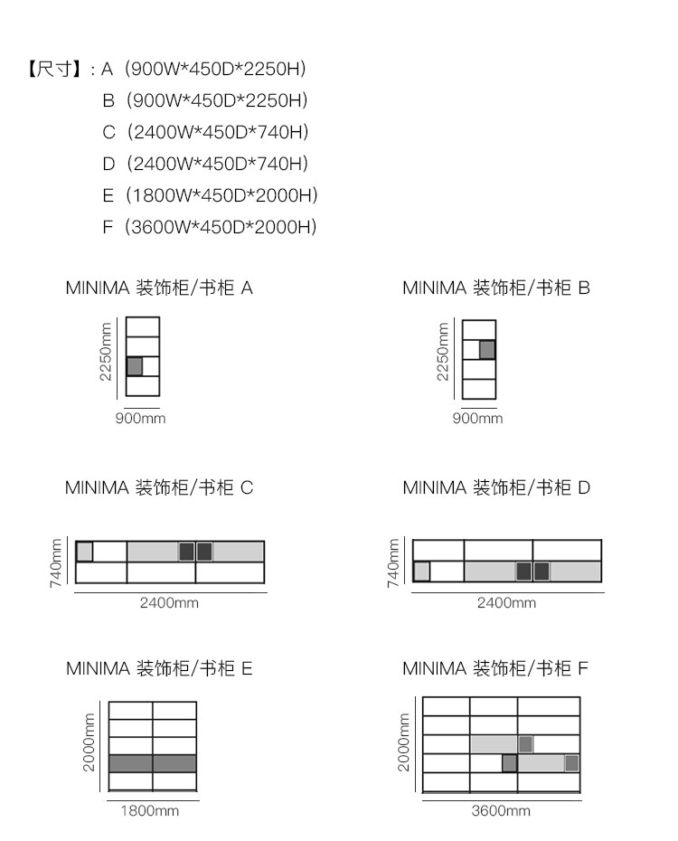 MINIMA 装饰柜/书柜 系列尺寸/示意图