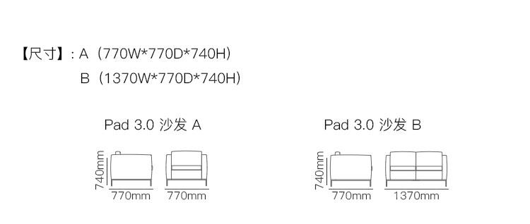 Pad 3.0 沙发 系列尺寸/示意图