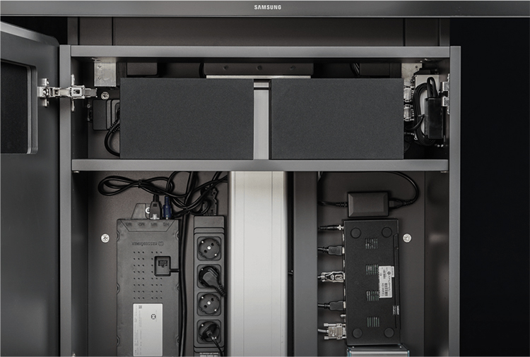 移动多媒体墙S1凭借着高功能性和灵活性的设计令人喜爱。集成的插头和播放控制系统提供了一个自由的多媒体方案,改变了用户的会议自由性。多种屏幕尺寸可供选择,适合于各种大小不同的会议室要求。
